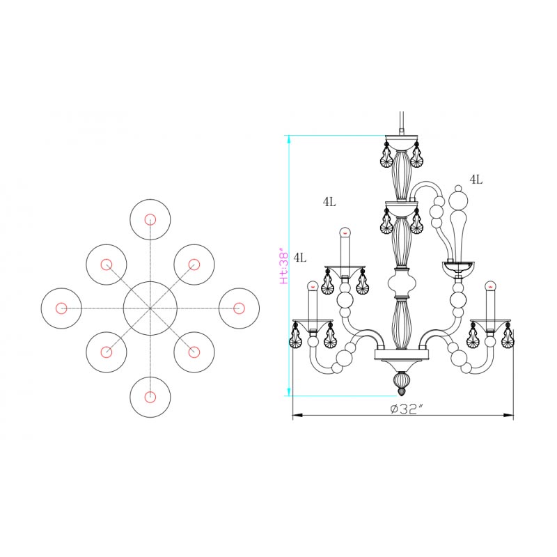 Color: Light Blue Murano Glass (Custom finishes are available at no additional cost.)