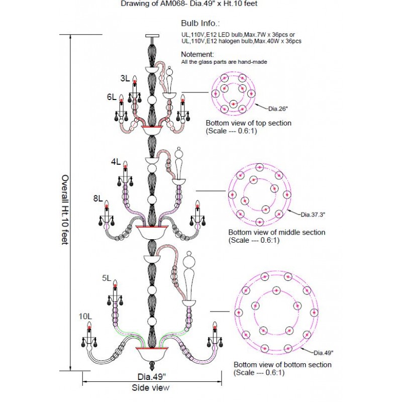 Lights: 8 USA/ 220V Europe 40 watt halogen Gi6 bulbs (included)