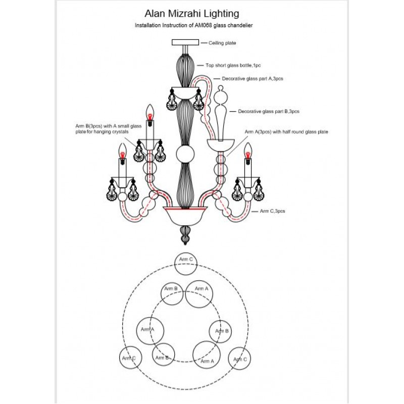 Modern hand-blown Murano glass chandelier by Nathalie Anette for ALAN MIZRAHI DESIGN collection, with clean simple lines, featuring elegantly curved arms and body with round cups. Available in custom sizes and a choice of multi different colors. Elegance and grace illuminate this classic and delicate Murano Glass Chandelier. Do not hesitate to ask us for a size you don't see listed. Bring a different era of history into your space with this truly an exquisite and stunning piece that will please for years to come.