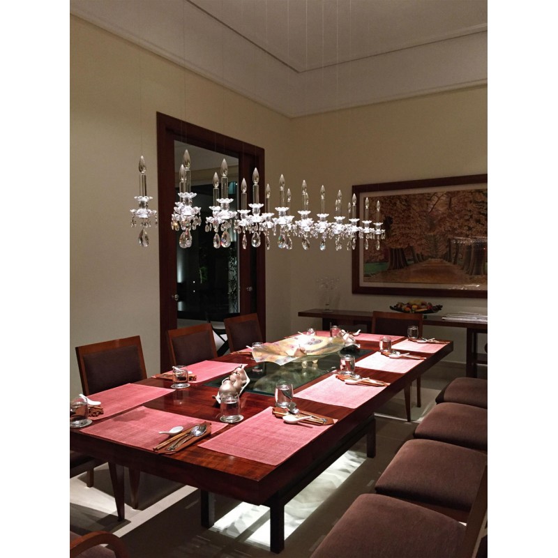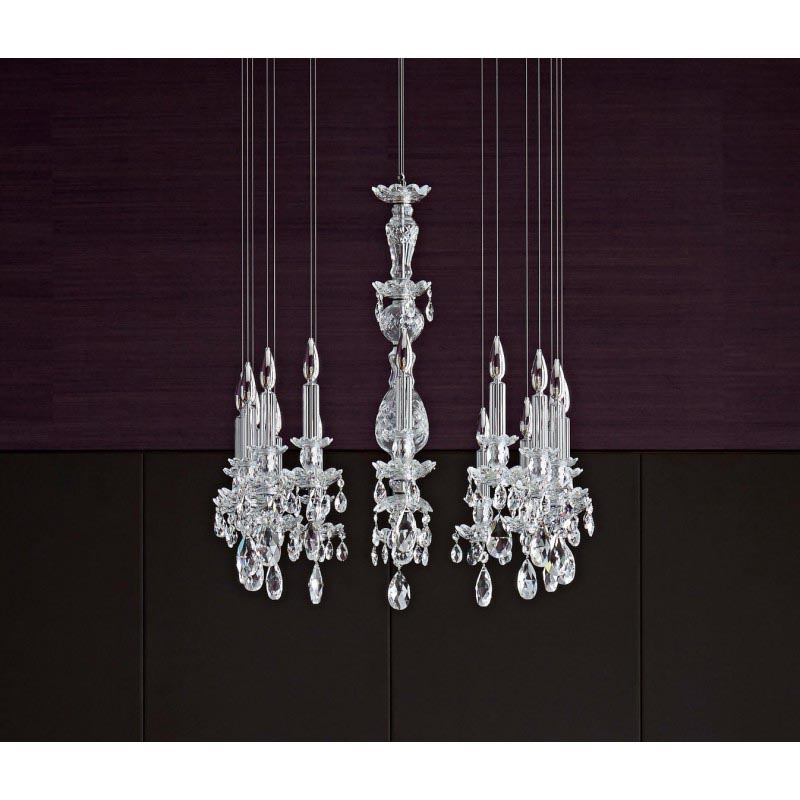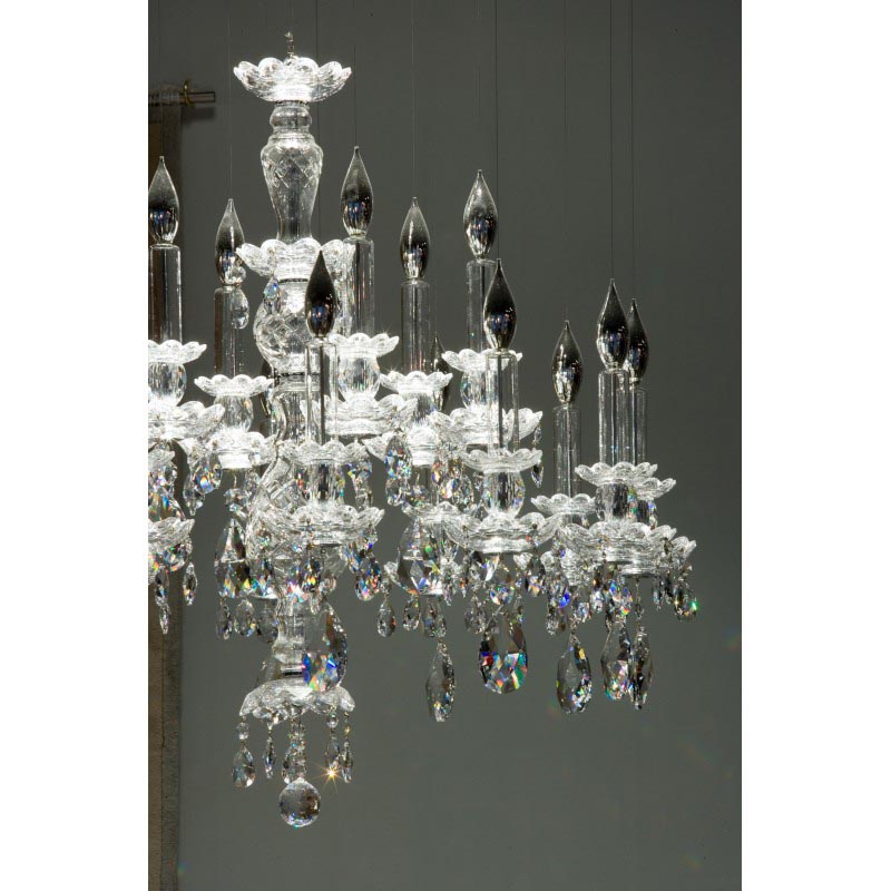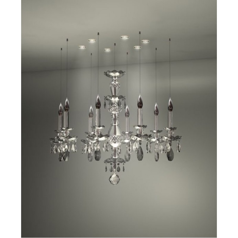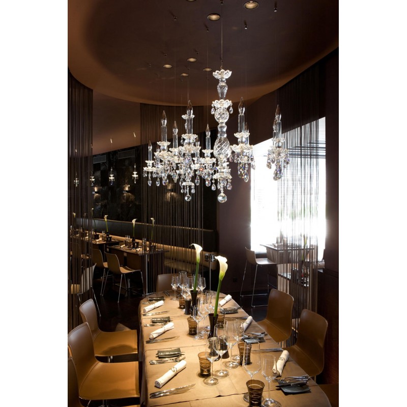 At the first glance a classic chandelier, but at the second sight it reveals the real spirit, the lightness and total freedom of composition. Flying candles, free floating, without any disturbing frame and light bulbs. Heavy crystal strass elements, especially made for Windfall by Swarovski, combined with hand-made gold- or silver-plated mouth blown candles, catch the light from the downlights above and radiate the light, sparkling. This design combines both worlds, classic and modern, and looks great in any interior. The Balances can fill an entrance hall, fly along hallways, descend in multiple stairways or just line up above a dining table.