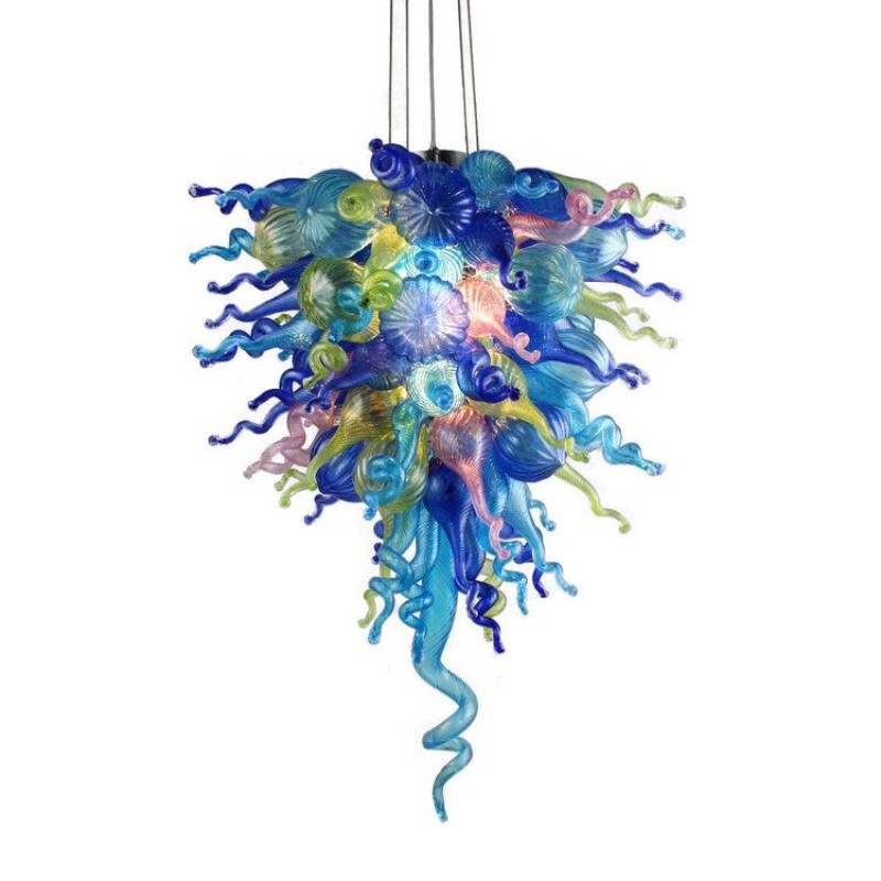 The majestic arms of this piece flow beautifully in a curling from top to bottom of the frame, spinning and wrapping the piece flawlessly. The striking, fantasy feel of this piece would add the perfect touch to a room that is in need of a pop of color or a huge statement piece set to transform a space into something totally different. Its smooth, handcrafted glass of multicolored head is sure to draw eyes and inquiries for years to come. At Alan Mizrahi Lighting Design, we supply and manufacture many highly sought after designer pieces, so if there is any designer fixture you are intrigued by or have your heart set on, let us know. By expanding to online marketplaces, we are able to bring you our brand and services locally and globally with unlimited access to our array of pieces 24-hour of day, 7 days a week, as well as aiming to make the purchase process fun and effortless for you. Enchant your guests with this purple, Blue Shades and mix color toned lighting fixture.