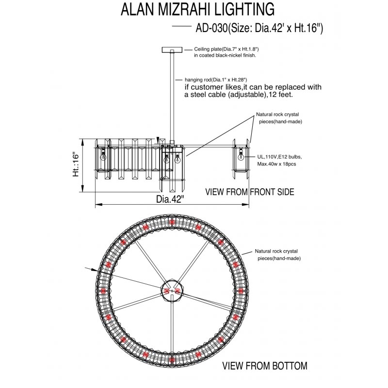 Lights: 11L110V USA/220V Europe 40 watt candelabra bulbs (included)