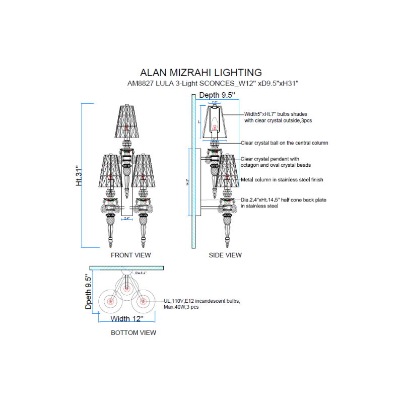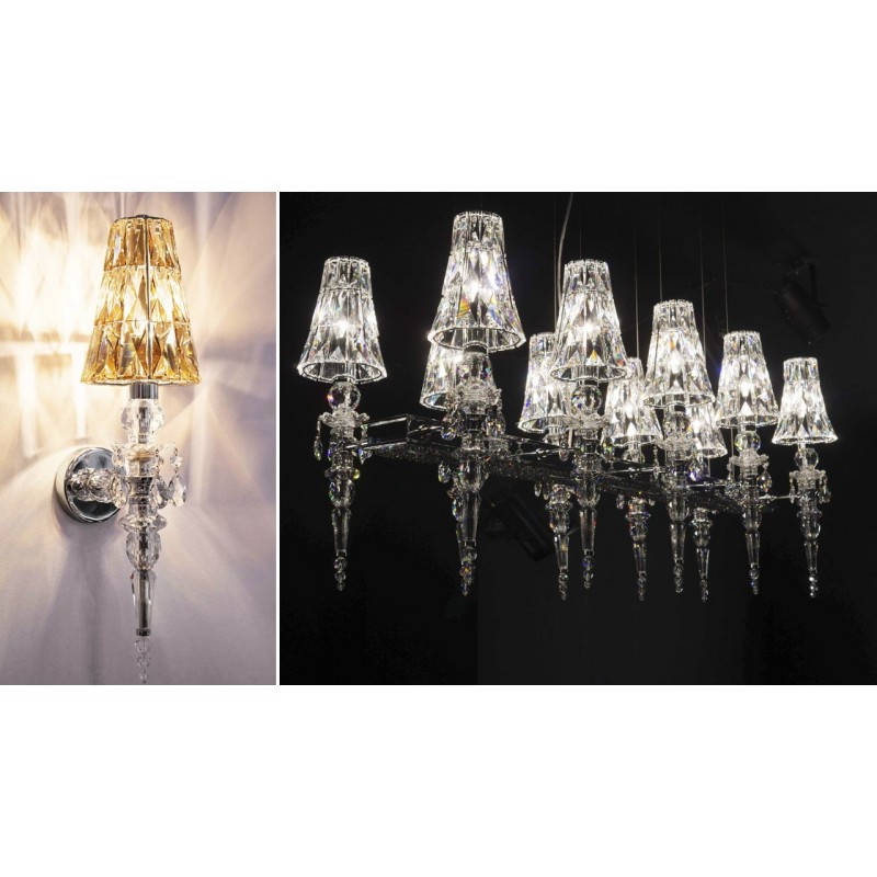 The LULA Wall Light combines classic forms with modern appeal, delivering the finest in your lighting and décor needs. In addition to providing an outstanding piece, we are also able to create this piece in whatever size, color, and finish you need. The warm ambiance of any space can always be filled with the enchanting, sparkling beauty of classical crystal light.