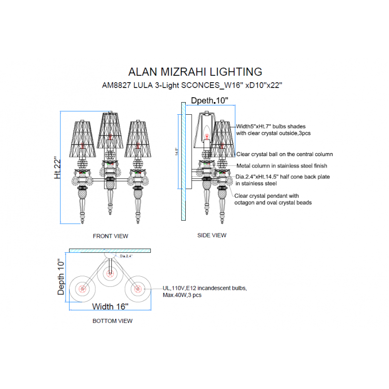 | 20" Wide x 22" Height (4 Light) | $2,730.00 |
