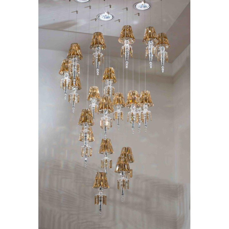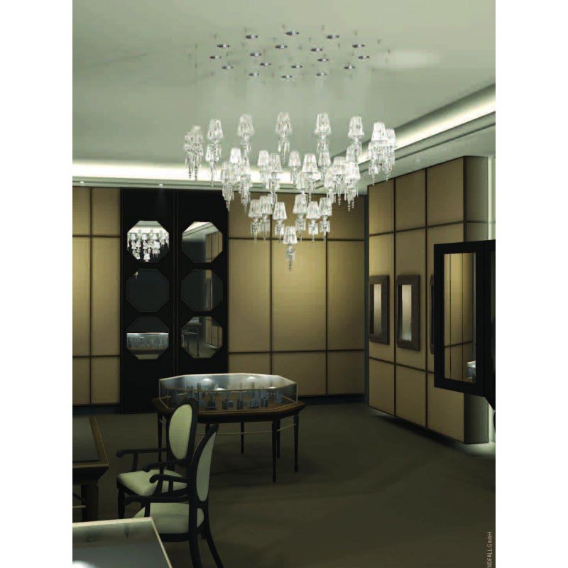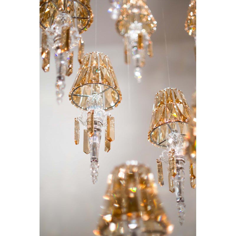 Lula Mini hanging fixture distributes surrounding illumination to reflect an exquisite array of shades. Discerning aesthetes, everyone from top tastemakers to titans of hospitality have all taken a shine to the bespoke installations. Many beaming in fine hotels, private palaces and chic boutiques for the likes of, Harry Winston and Montblanc. Created in collaboration with architects and designers, and handcrafted from Swarovski Strass crystal, this lustrous, prism-like looker, awash in crystal and reinterpreted with modern flair, far outshines lesser illuminates. Truly luminous, is its innovative configuration. LED-lit from above. The LULA Light combines classic forms with modern appeal, delivering the finest in your lighting and décor needs. In addition to providing an outstanding piece, we are also able to create this piece in whatever size, color, and finish you need. The warm inviting ambiance of any space can always be filled with the enchanting, sparkling beauty of a classical crystal light. Having created custom chandeliers for over three decades, we specialize in bringing lighting concepts into reality, whether your inspiration comes from a rough sketch, an existing chandelier, our original concepts, or even your own creative imagination. Large or small, our team can meet the challenge, and can even coordinate the production of a private collection, where all finishes are kept consistent. Let us create the perfect lighting fixtures for your individual needs, to your individual specifications, and with attention to detail throughout production.
