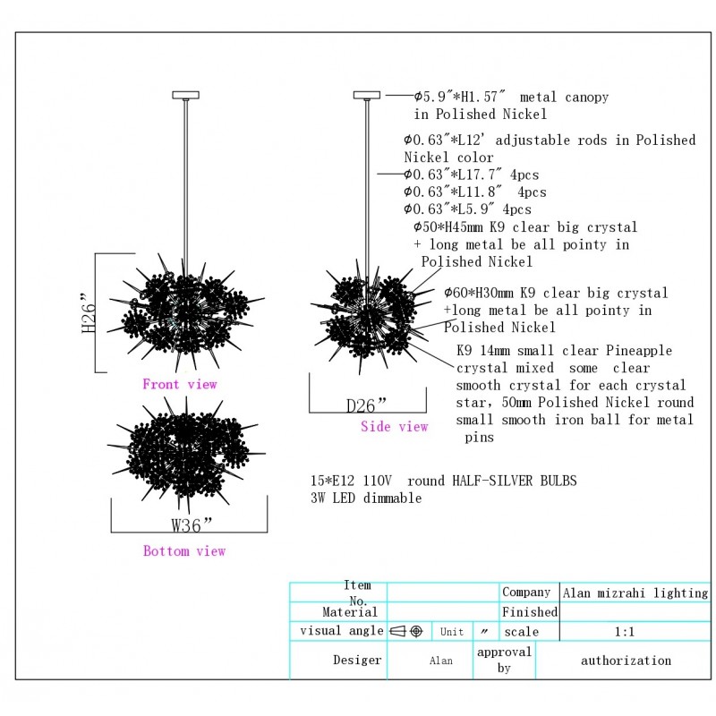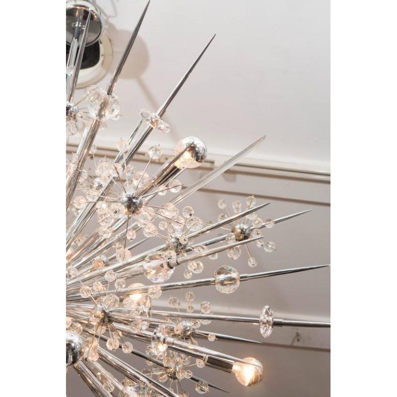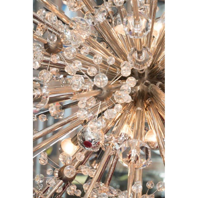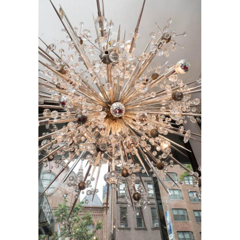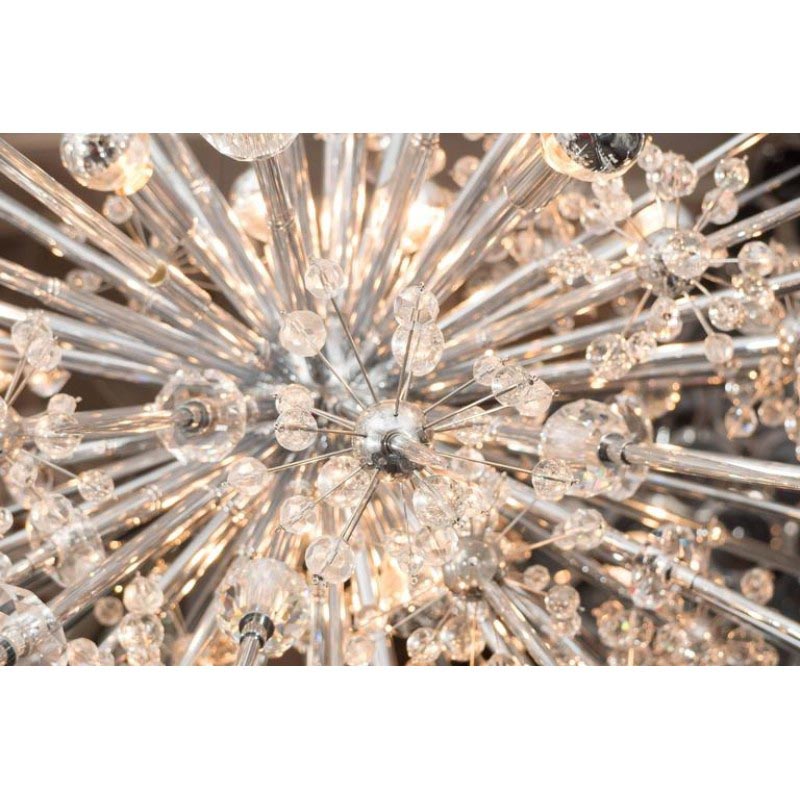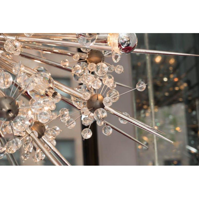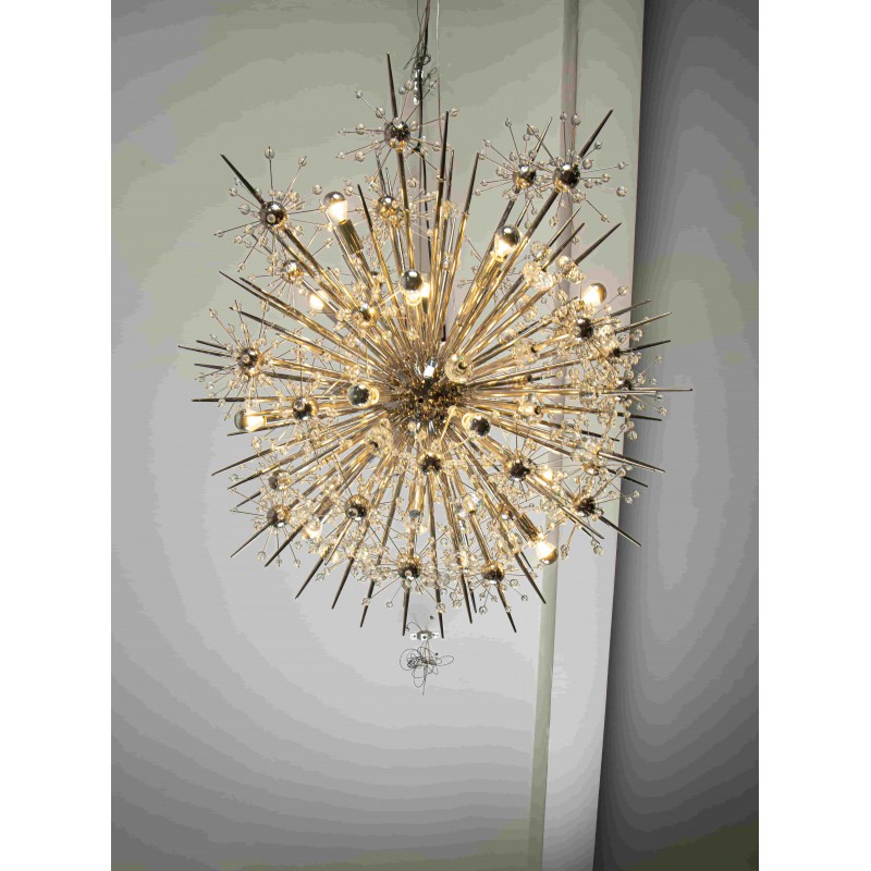 Be the life of the party ALL the time with this extremely elegant, yet modern Crystal Esprit Sputnik lighting fixture that glows with sophistication and pristine style. In addition to its extensively detailed design, there is also a huge celestial and space-oriented inspiration for this piece. The inspiration for it came from Wallace K. Harrison, the architect of the Metropolitan Opera House when he gave the designers of the original Sputnik, pictures of the galaxy. The original Sputniks are one of the most recognizable features of the opera house, and it's said that you can even see them through the windows from the outside!