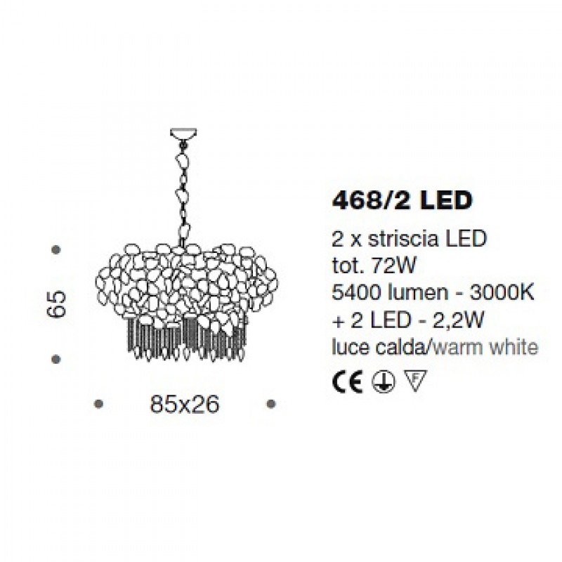Bulbs: 2 x striscia LED (5400 lumens- 3000K) max 72W