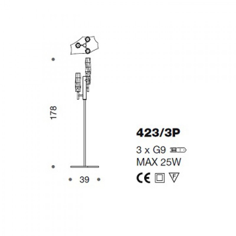 Bulbs: 3x G9 bulbs max 25W