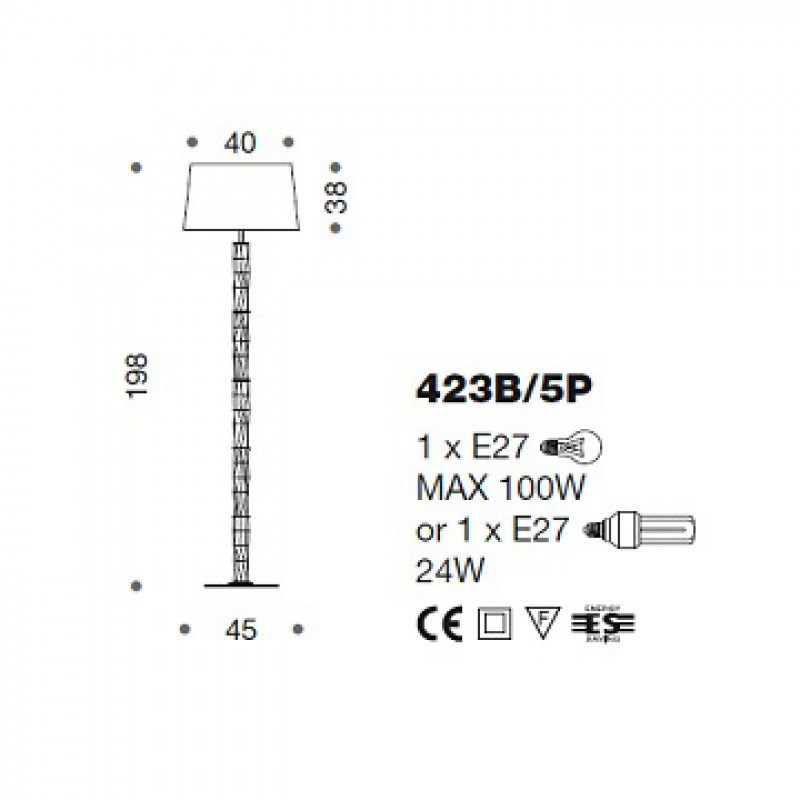 Bulbs: 1 x E27 bulbs max 100W