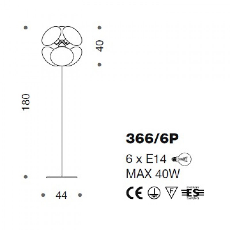 Bulbs:6 x E14 bulbs max 40W