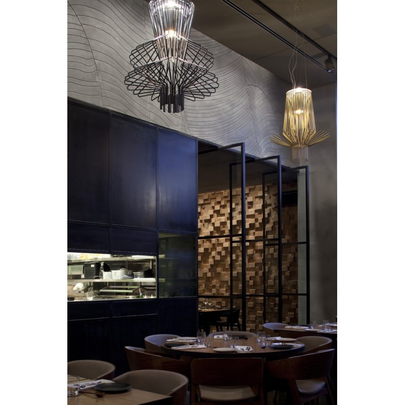 • Allegro Ritmico Pendant Light. Designed by Atelier Oi, 2007. A group of lines that create an elegant, fascinating symphony in a suspended, almost magical equilibrium and give life to a new lamp designed to feature in large public and private spaces.
