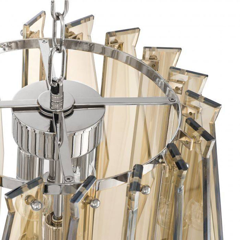 Enhance your decor with the Chandelier Twist, a ceiling fixture that will gorgeously create stunning harmonic refraction of light in your interior. This piece would truly be treasured in any place it is installed and put to use. Its frame features a beautiful polished nickel finish with gold-tinted glass, a lovely design. Dramatic lighting is fully customizable and tailored to fit your space perfectly.