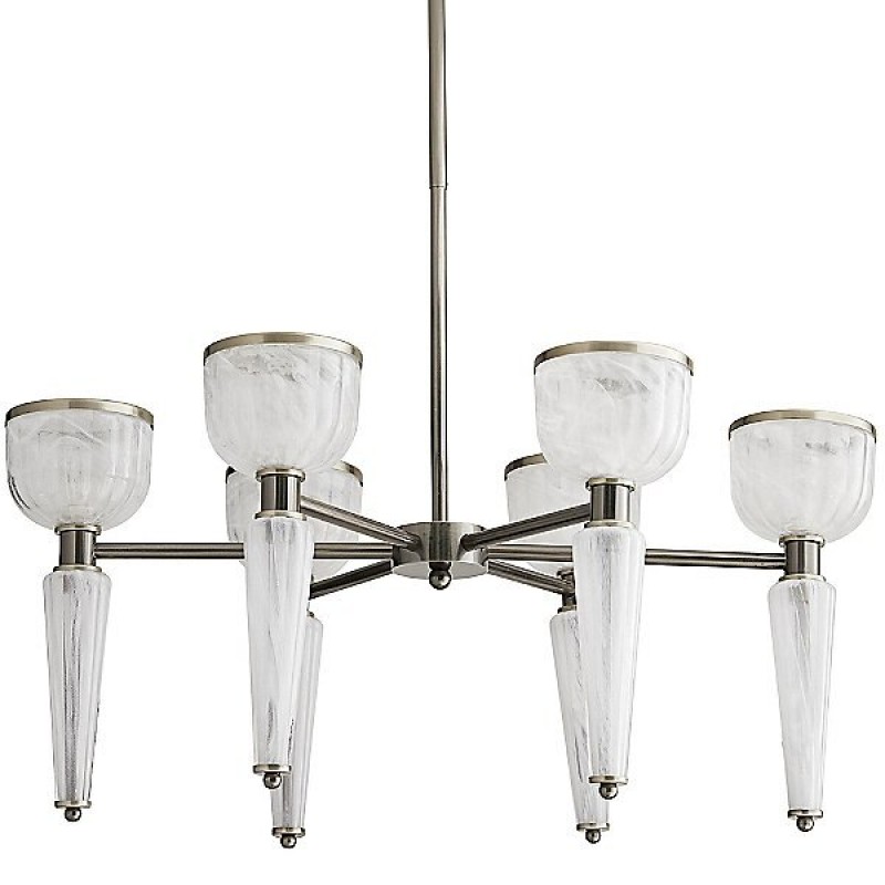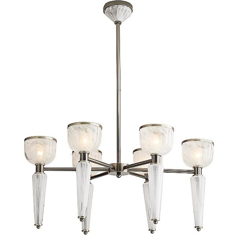 The Richardson Chandelier by Arteriors creates soft, diffused lighting for contemporary living environments while utilizes its ultra-modern design to harken back to a time when fire-lit torches were a common source of illumination. The fixture’s immediate focal point is in its 6 torch-like diffusers, which are created from a swirled glass and help the incandescent bulb within each of them (not included) to create a warm and immersive type of light. Not only does proper illumination add basic functionality, it can also contribute to an overall design style and act as a tool to highlight different features or create the perfect ambience.