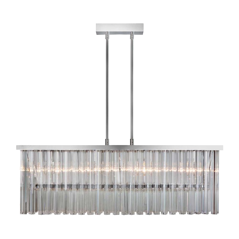 A contemporary rectangular ceiling light with a filled base, designed for use over dining tables, peninsulars, central islands and breakfast bars. We are able to fully customize all work. If there are any alterations you would like to make to any of our pieces, just let us know.