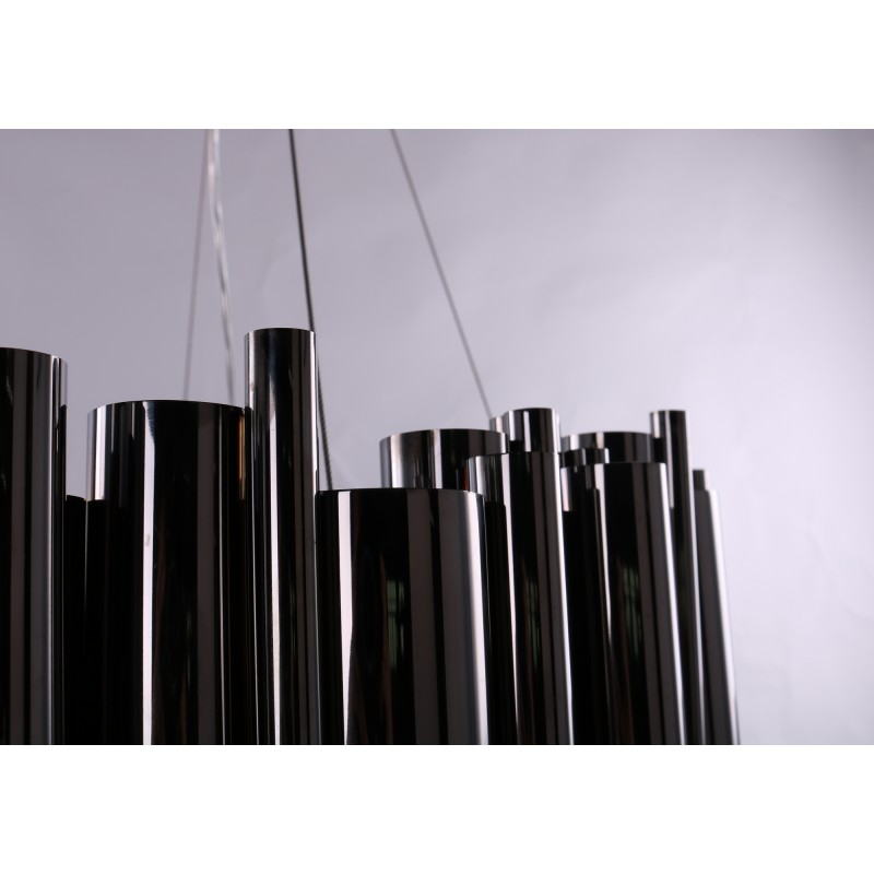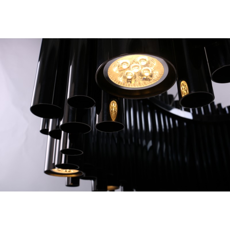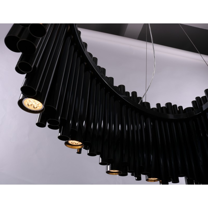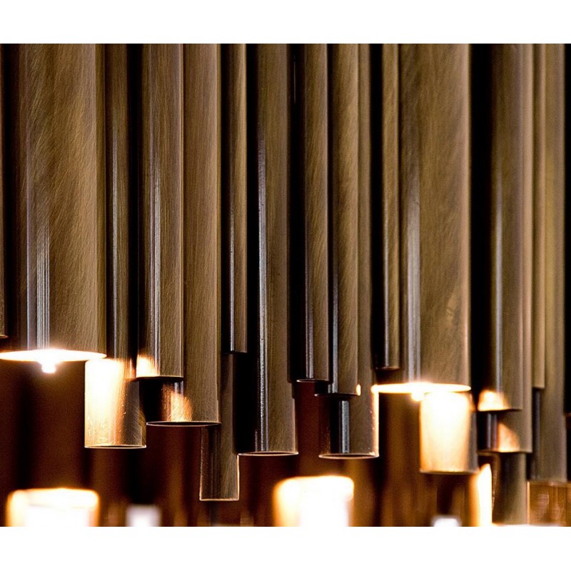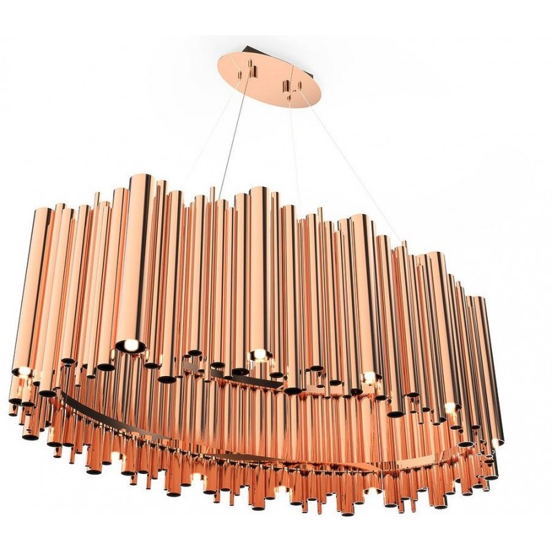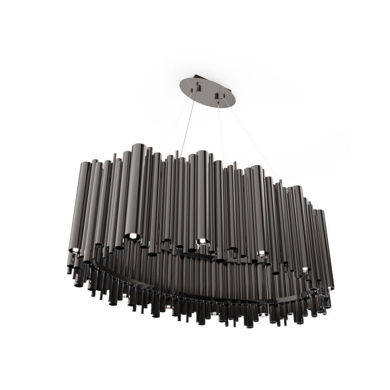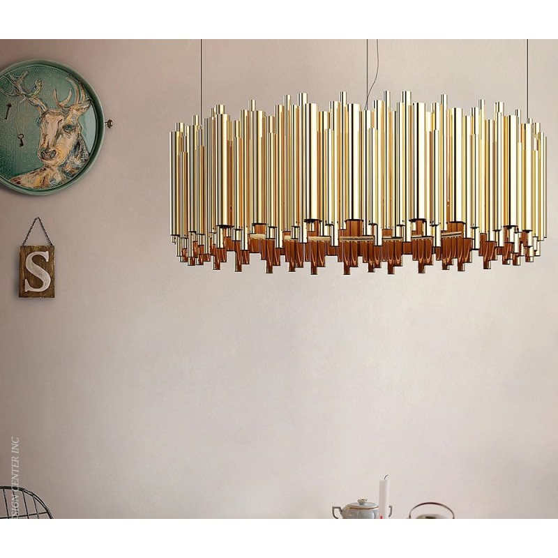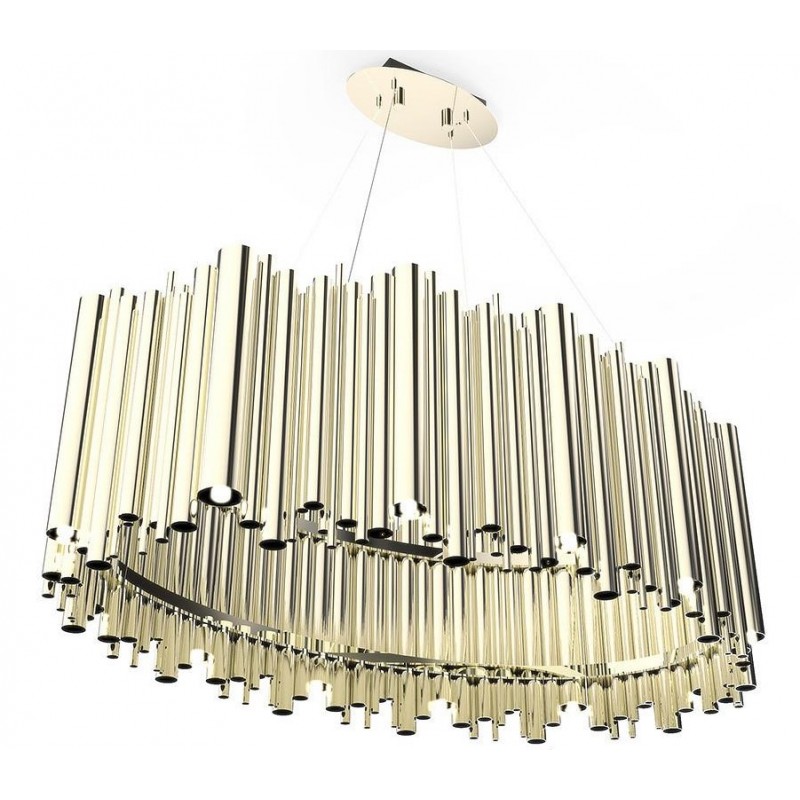Brubeck mid-century modern chandelier is inspired by one of the foremost exponents of cool jazz: Dave Brubeck. This unique lighting design represents the sophistication and finesse of the American jazz pianist, displaying a very luxurious feeling. Skilled artisans handmake this round chandelier in brass, covering it with a gold-plated finish or customized in multiple other finishes. The result of this outstanding creation is a functional dining room chandelier with sculptural shapes. The key to an elegant, opulent, bespoke design is understanding the aspirations of the client, the relevance of location and through maximizing the potential of existing elements of the space.