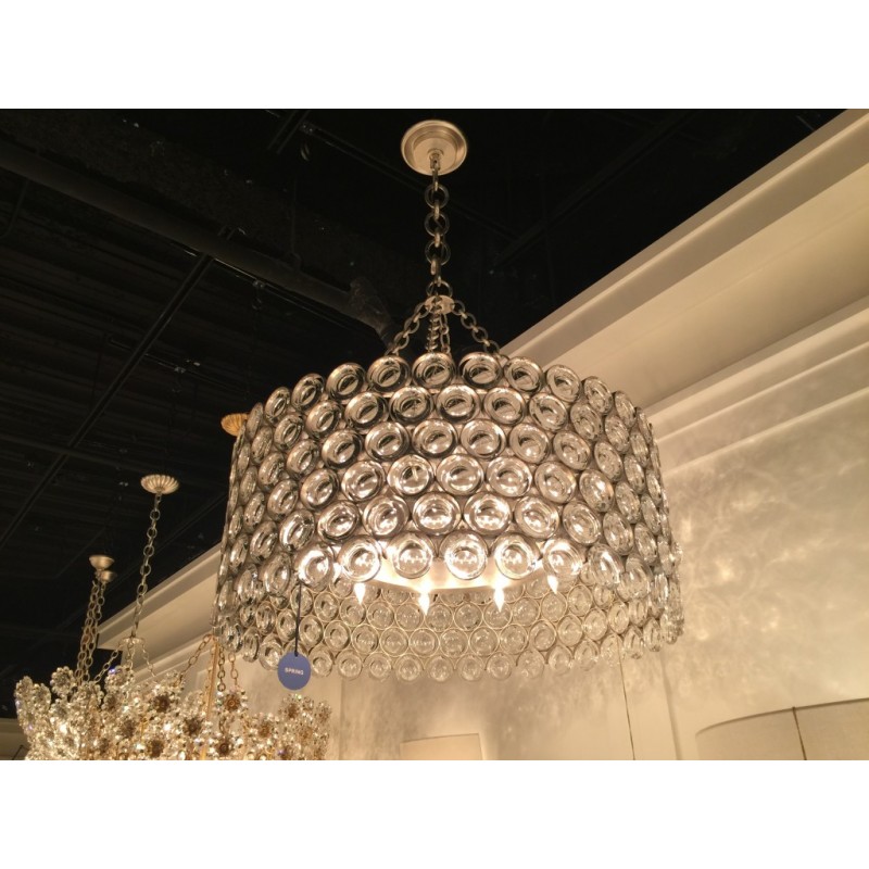 A stunning chandelier with an art-deco feel, the Lesina is embellished with circular crystals. A focal point, this beautiful piece draws interest wherever it is placed. When lit, it has a sparkling intensity. At Alan Mizrahi Lighting Design, we manufacture many highly sought after designer pieces. All Chandeliers can be customized by a number of lights, style, color, and size to meet your specific needs. Every chandelier can also be combined with a matching table lamp and wall lamp to accomplish the best room design. Our company provides collections that can make all your project dreams come true. The key to an elegant, opulent, bespoke design is understanding the aspirations of the client, the relevance of location and through maximizing the potential of existing elements in the space.
