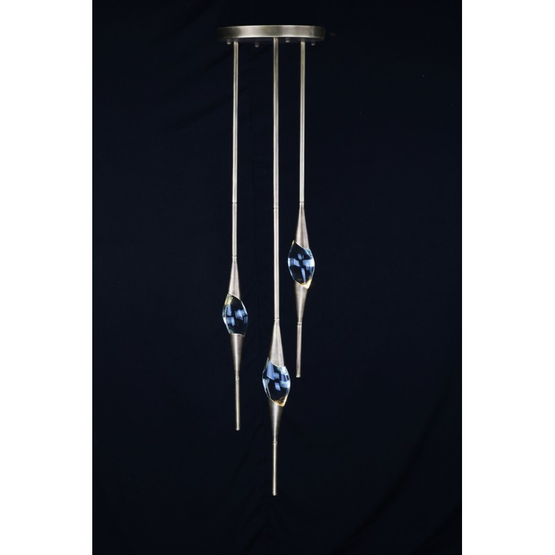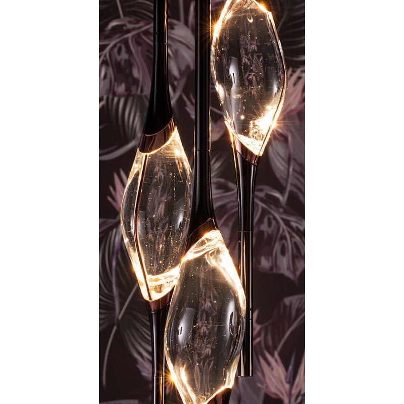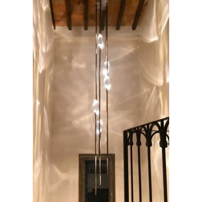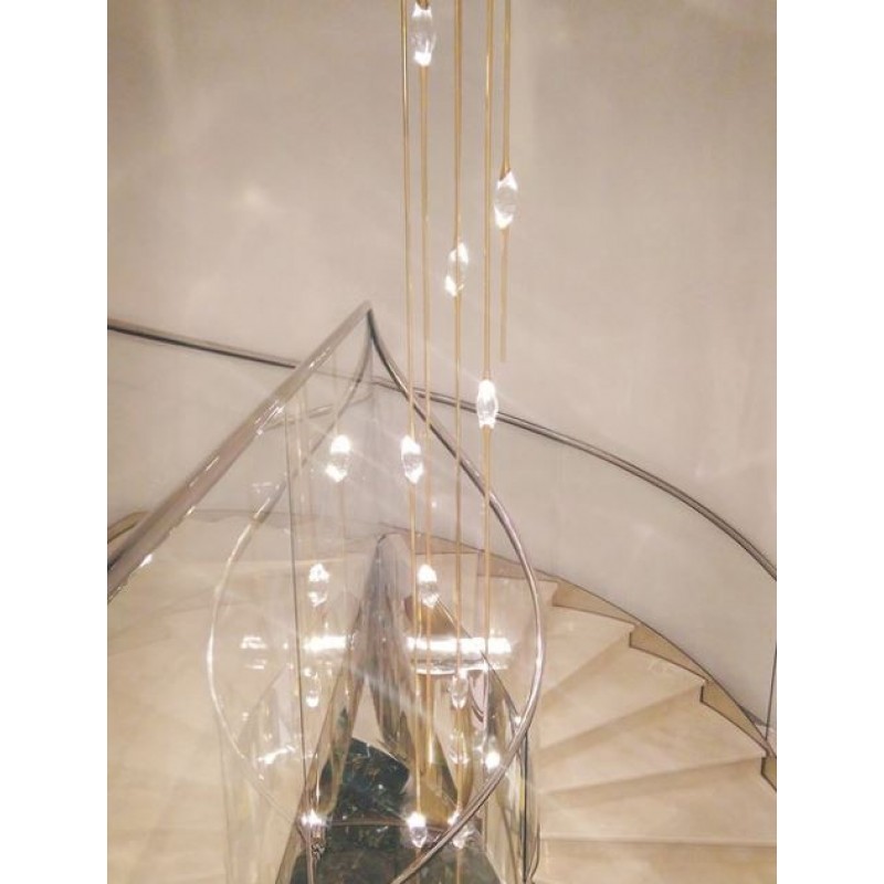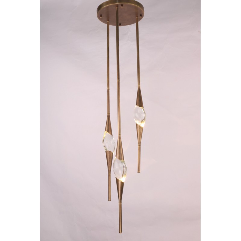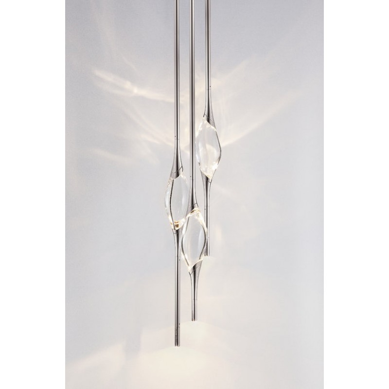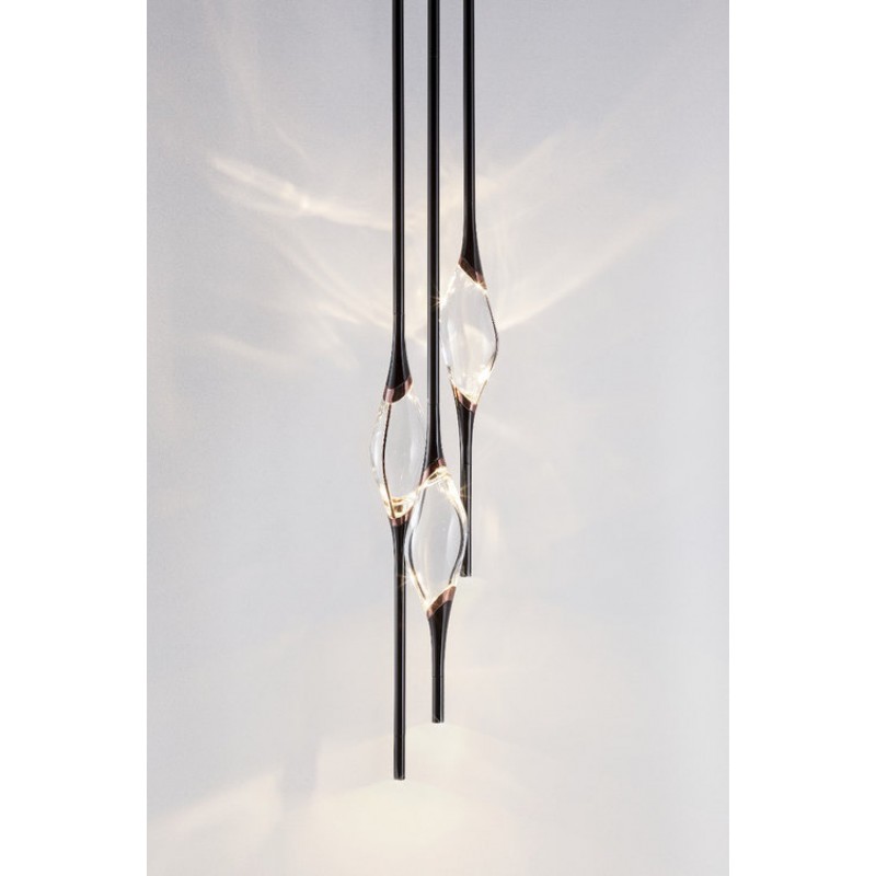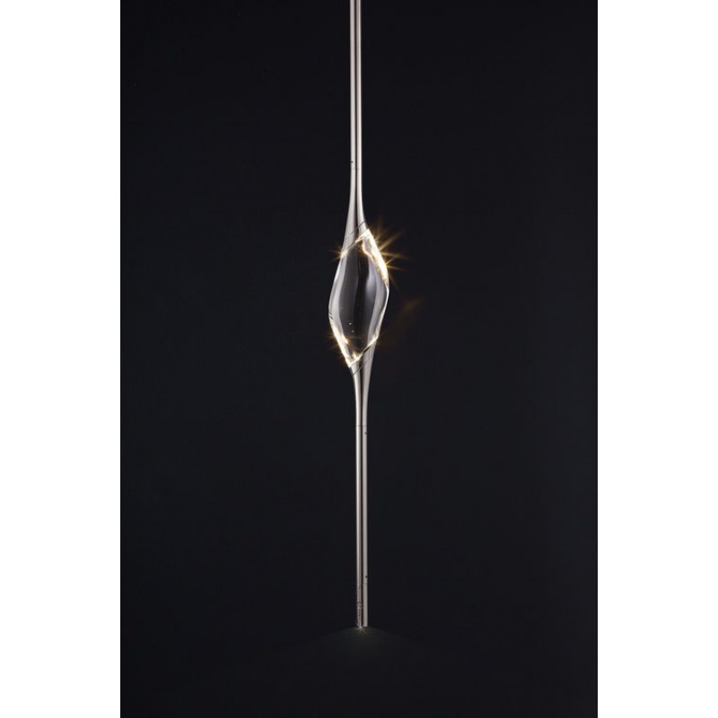 IL Pezzo 12 is a female figure suspended in the air, carrying in her womb the light. It’s nimble, refined, addictive. The solid clearest crystal, illuminated by two LEDs, creates diffused ambient lighting and casts amazing patterns around the room. The crystals are suspended between brass stems and brass casting rings, available in different finishes. At the end of each stem, another LED spreads a direct light. Il Pezzo 12 allows creating clusters able to satisfy the most demanding designs by creating fascinating compositions.