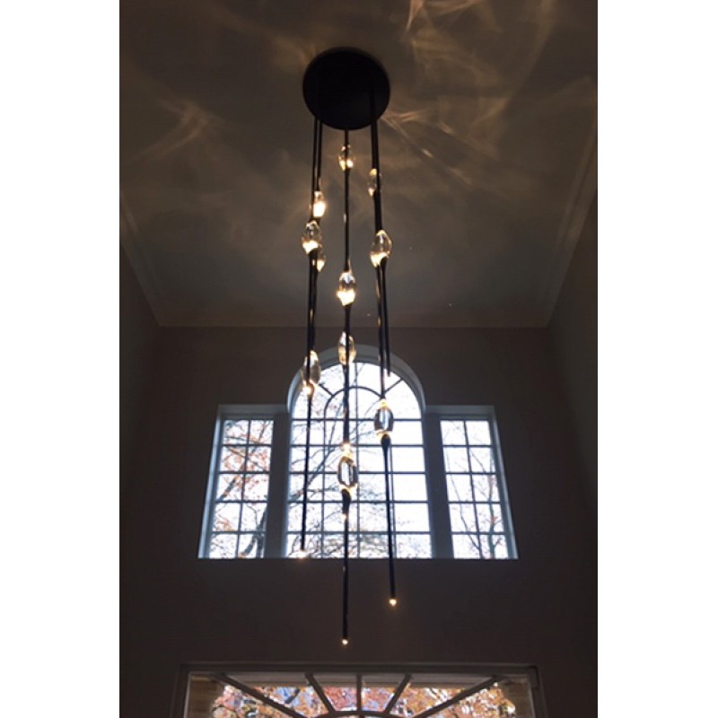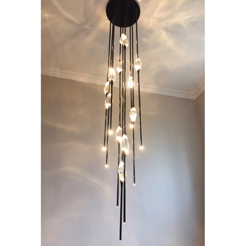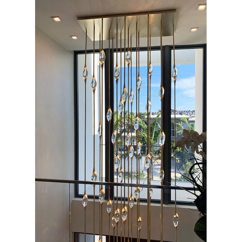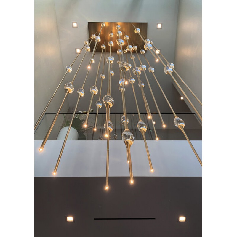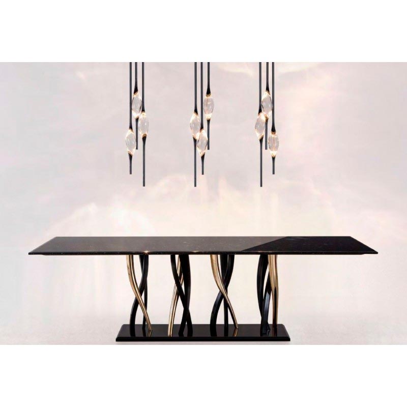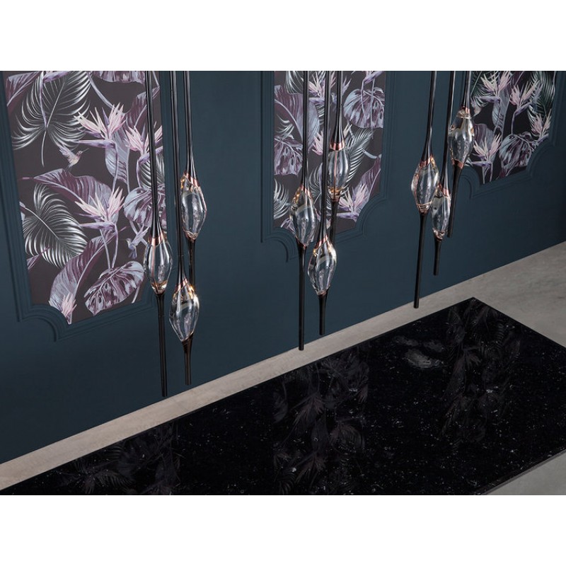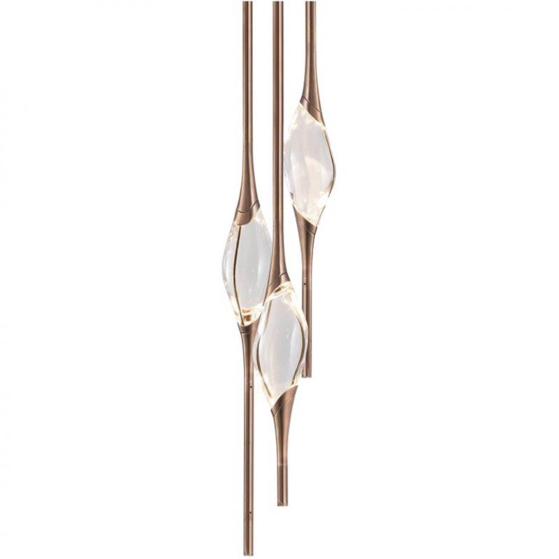 IL Pezzo 12 is a female figure suspended in the air, carrying in her womb the light. It’s nimble, refined, addictive. The solid clearest crystal, illuminated by two LEDs, creates diffused ambient lighting and casts amazing patterns around the room. The crystals are suspended between brass stems and brass casting rings, available in different finishes. At the end of each stem, another LED spreads a direct light. Il Pezzo 12 allows creating clusters able to satisfy the most demanding designs by creating fascinating compositions.