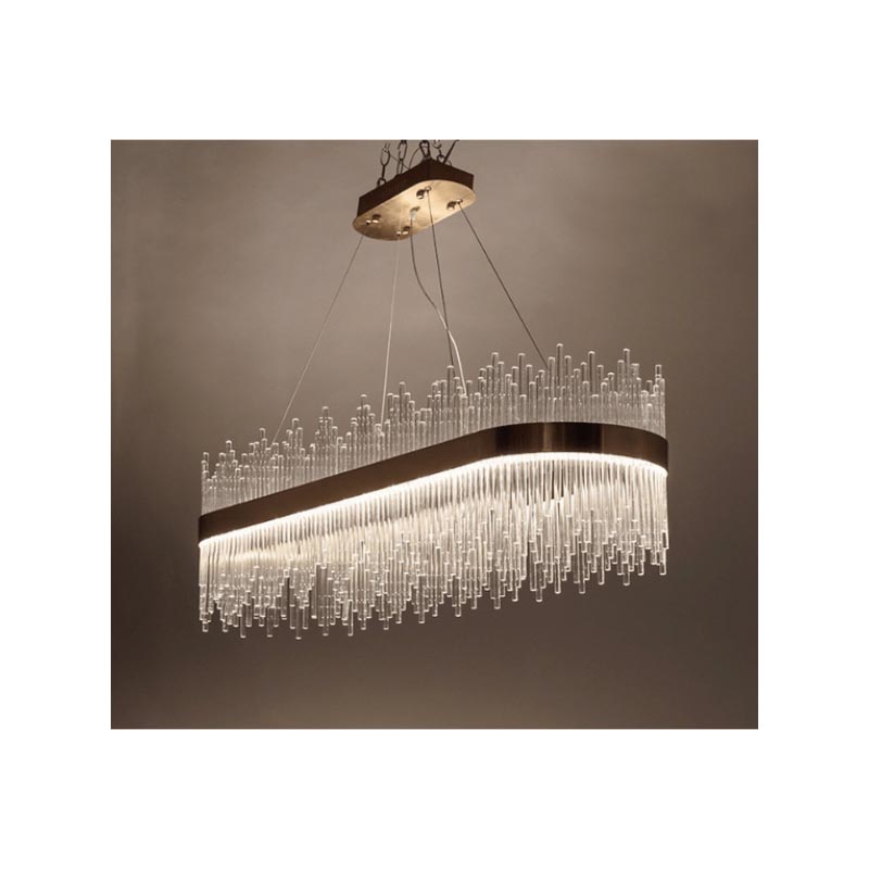 A ceiling chandelier made of glass tubes of different heights that reflect the light in your room majestically. It is a modern and exclusive design just for you. At Alan Mizrahi Lighting Design, we manufacturer many highly sought after pieces.  All Chandeliers can be customized by a number of lights, style, color and size to meet your specific needs. Every chandelier can also be combined with a matching table lamp and wall lamp to accomplish the best room design. Our company provides collections that can make all your project dreams come true. The key to an elegant, opulent, bespoke design is understanding the aspirations of the client, the relevance of location and through maximizing the potential of existing elements of the space.