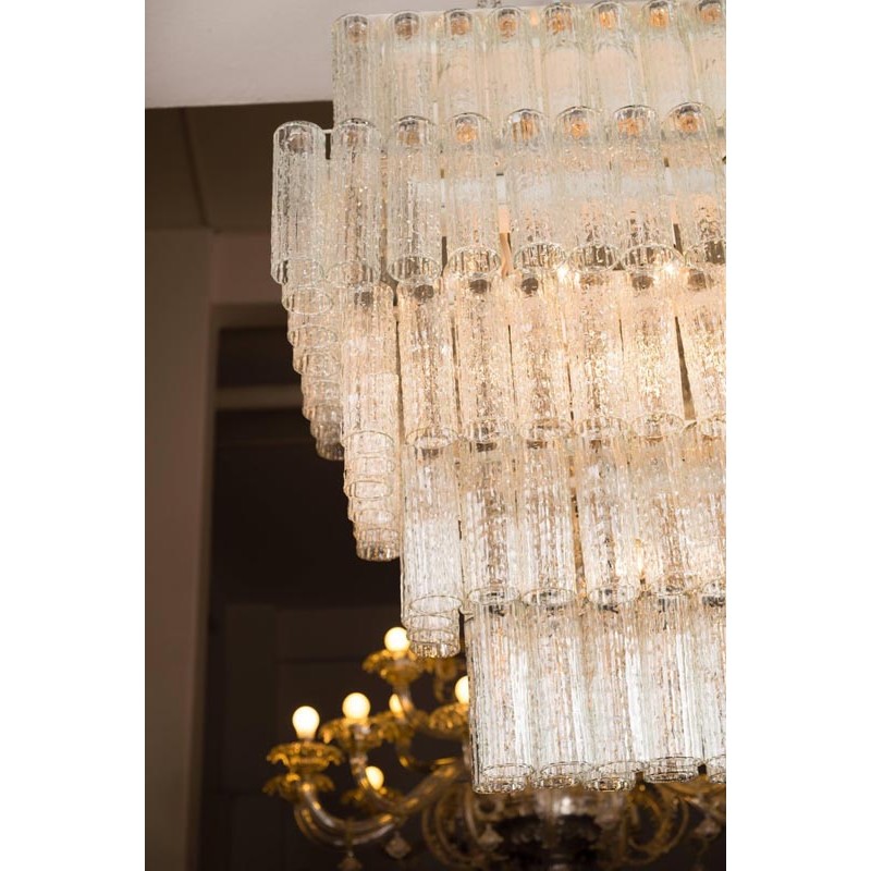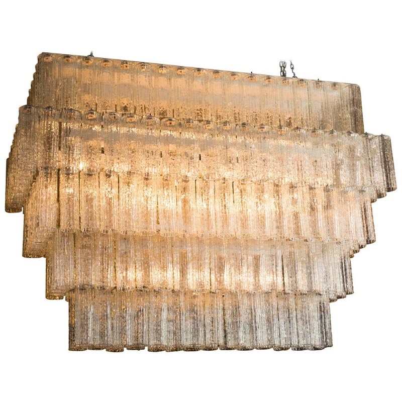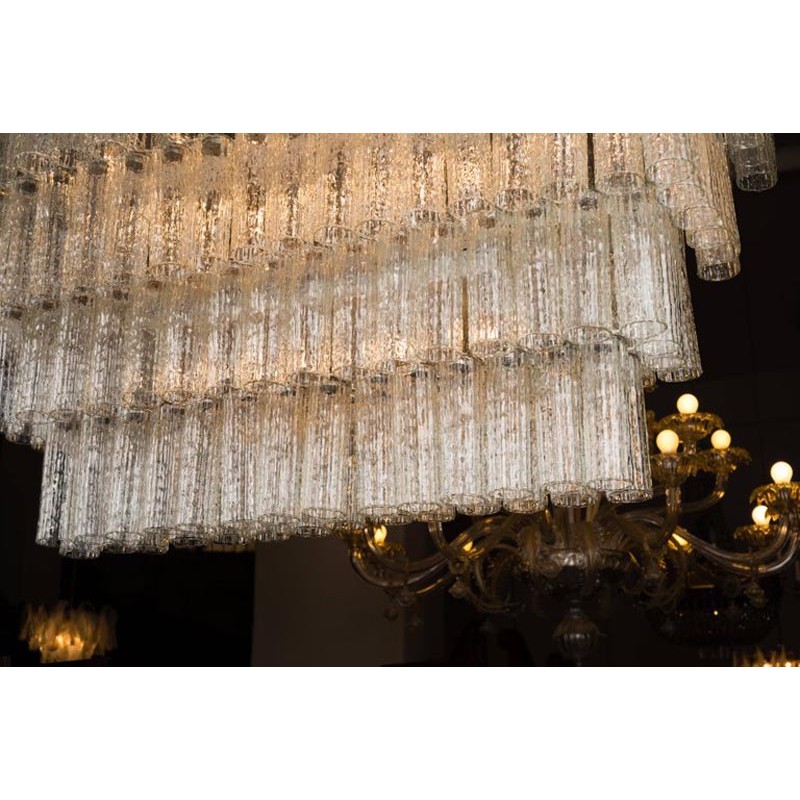 This large Italian Murano art glass chandelier was designed and manufactured by Venini in is an incredible source of light to illuminate a large area. It consists of 200 lamps, illuminated by 34 light bulbs with a small attack. Light is a pivotal element of any setting, highlighting its furnishings and defining its spaces. Choosing the right chandelier, wall fixture or floor lamp is therefore essential to any interior decor project. Murano Glass chandeliers, lamps and fixtures are no ordinary light source: they are authentic pieces of artwork that will take a central role in making your home a luxurious living space. Our company provides collections that can make all your project dreams come true.