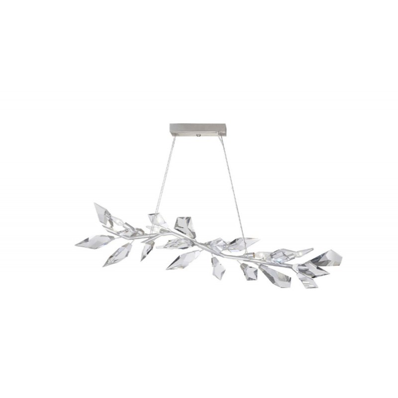 Inspired by nature and its majestic forests, this gold leafed Foret pendant features modern branches adorned with bold, hand-cut faceted crystal leaves. Also available in silver leaf. Includes decorative bulb(s). In addition, it's available in multi-color for a colorful and vibrant look as well! Finally, the lamp is equipped with a long metal cable to ensure just the right placement of this unique and compliment accompanying fixture. Having created custom chandeliers for over three decades, we specialize in bringing lighting concepts into reality, whether your inspiration comes from a rough sketch, an existing chandelier, our original concepts, or even your own creative imagination. Large or small, our team can meet the challenge. This hanging light sculpture looks interesting from any angle, and makes nice shadows. We hope to bring this joy to you and your environment as we ultimately believe that good design should make the world around us a more beautiful and harmonious place to live. This is what a new age chandelier looks like.