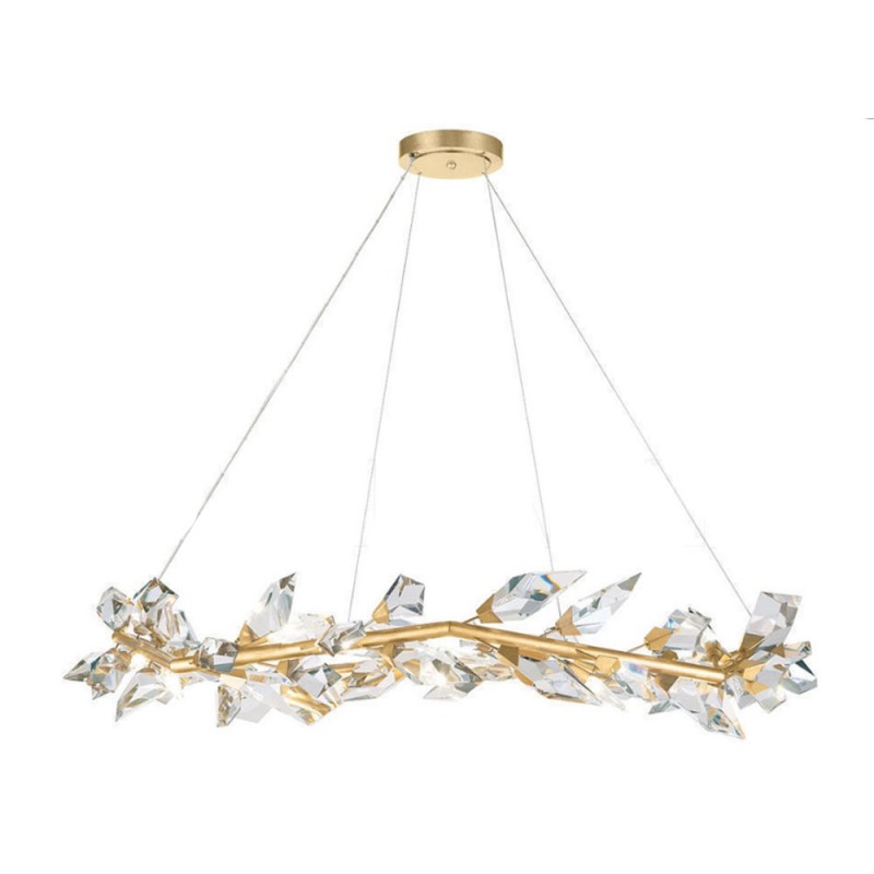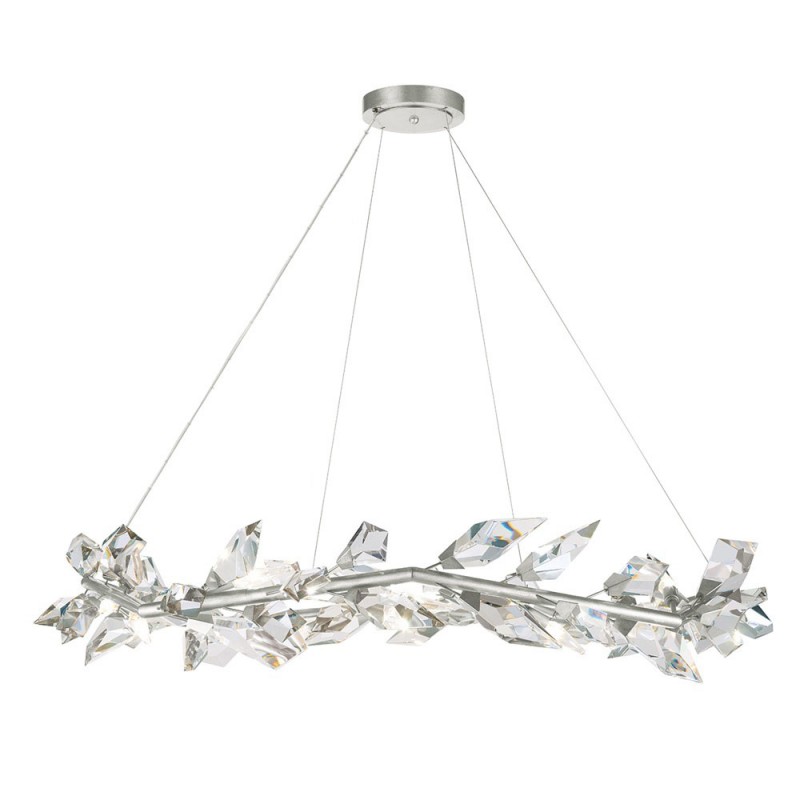 Inspired by nature and its majestic forests, this gold-leafed Foret pendant features modern branches adorned with bold, hand-cut faceted crystal leaves. Also available in silver leaf. Includes decorative bulb(s). This piece can be installed directly to the ceiling or using an optional cable that extends to 12ft to bring the pristine glass teardrops even closer to your eyes. Surprise your guests, employees, or whoever else that may encounter this contemporary and eye-catching fixture that would be a highly impressive focal point in any room you place it. We hope to bring this joy to you and your environment as we ultimately believe that good design should make the world around us a more beautiful and harmonious place to live. We really like to play with light and shadow to create an atmosphere within an interior space. Bring the tranquil feel of water flowing into your home with this amazing hand-blown glass chandelier.