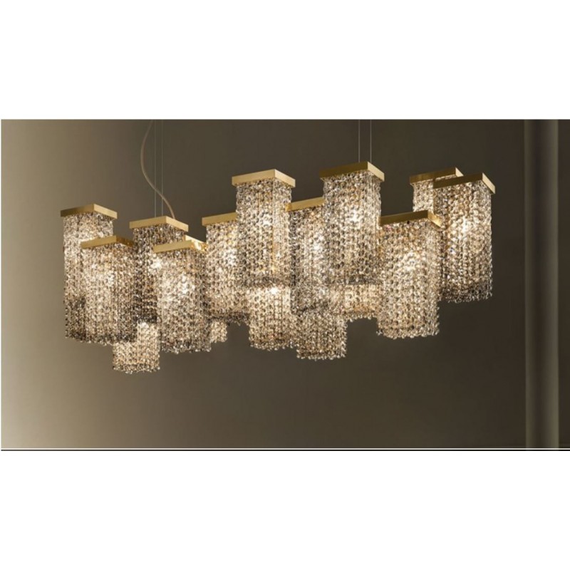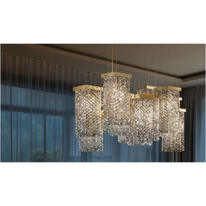 Countless octagonal crystals compose this beautiful and unique light fixture. Beaded strands are carefully crafted of the highest quality materials and tightly woven so that the light filters though to cast a beautiful shadow. Customize your chandelier by selecting from a fabulous array of glass in different color options. This stunning chandelier is perfect for your beach house or coastal home, and will look stunning in your dining room, entryway, bathroom, or bedroom, a designer favorite!
