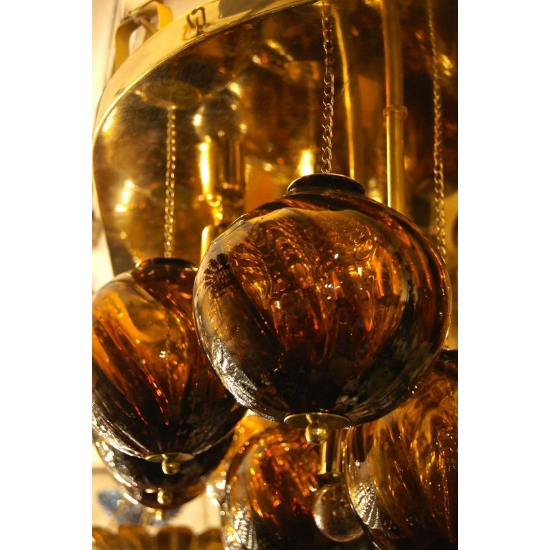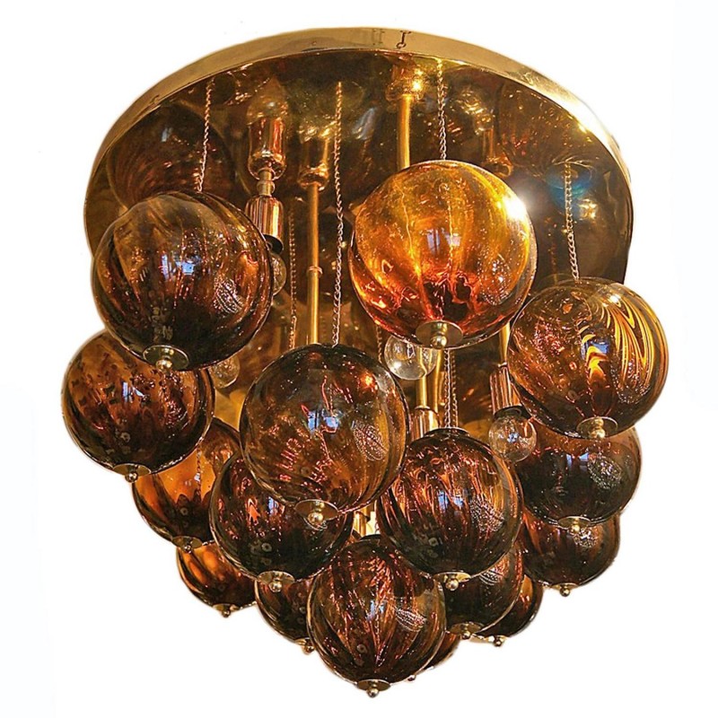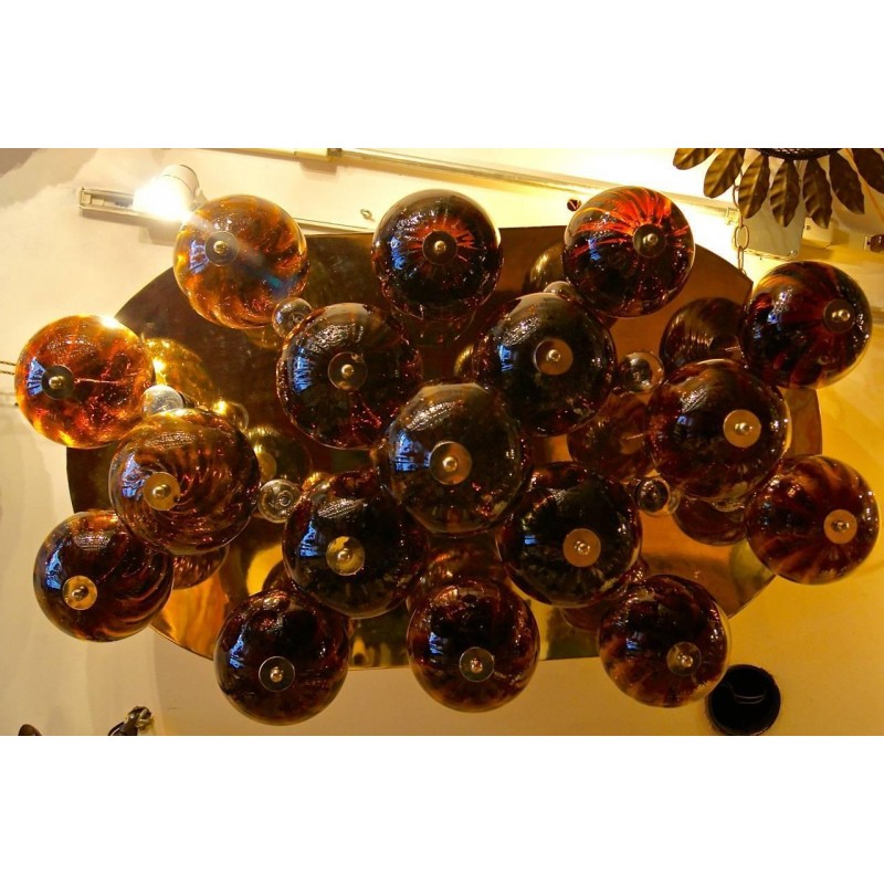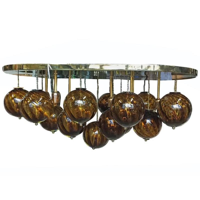 Here, we have this Italian oversized oval ceiling plate holding suspended amber color glass globes, circa the 1960s. Among the many things that inspire the creator of this lamp, is a love of art, fashion, nature, and architecture-and this piece is no exception. A divine fusion of both dramatic elements and the simplistic edge is apparent, as well.. Its lovely hue is sure to cause many second glances and even more compliments.