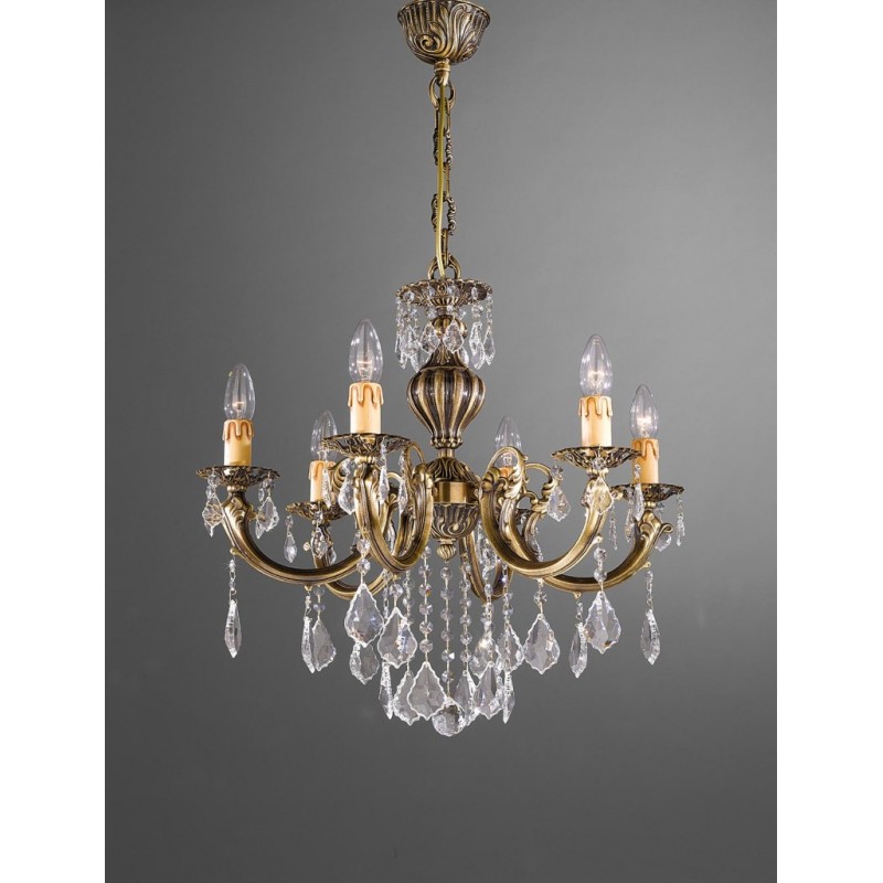 A very elegant, scenic and decorative series: in fact, its design revisits the old Spanish colonial-stylechandeliers, with their streamlined shape enriched with the most modern crystals.The lamp body is made entirely of brass, while its bronze finish is the work of Italian craftsmen who, for generations, have handed down the art of the nuance of bronze on brass.The result is an object of absolute value, designed and hand finished by the utmost masters of the great tradition of Italian craftsmanship.