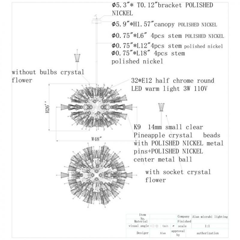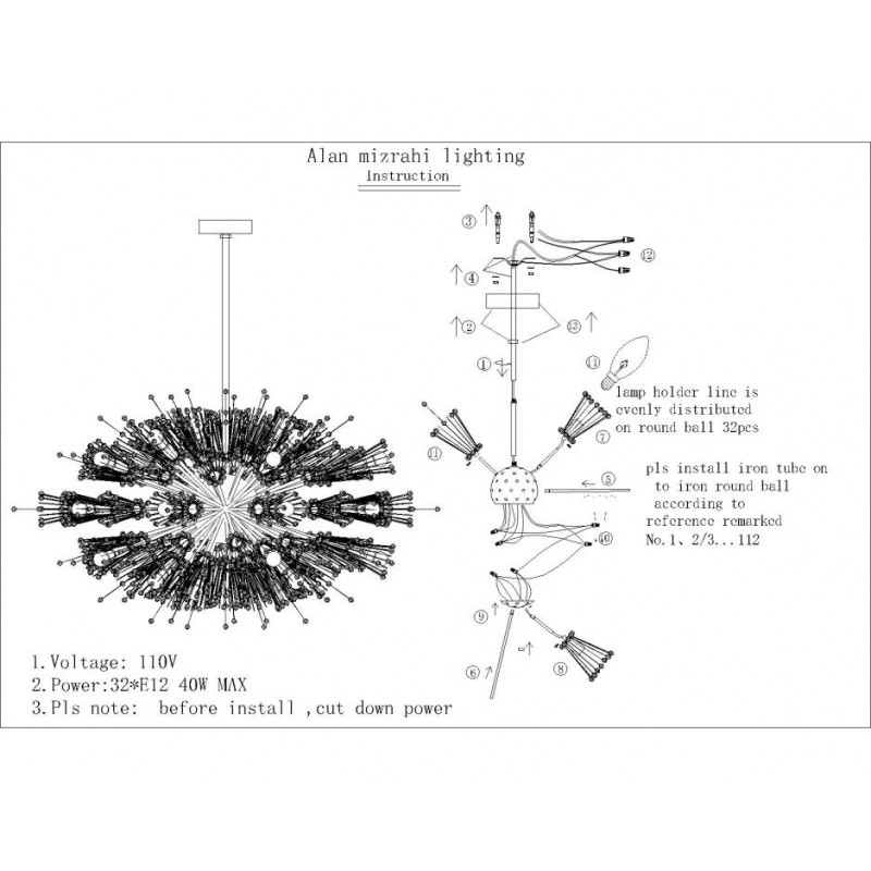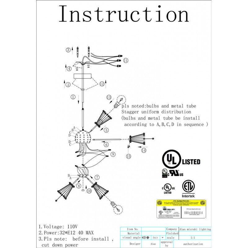 Bulbs: 14 Lights 60 Watt 110V USA/220 V Europe-candelabra bulbs (included)