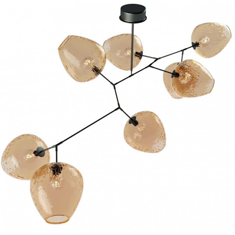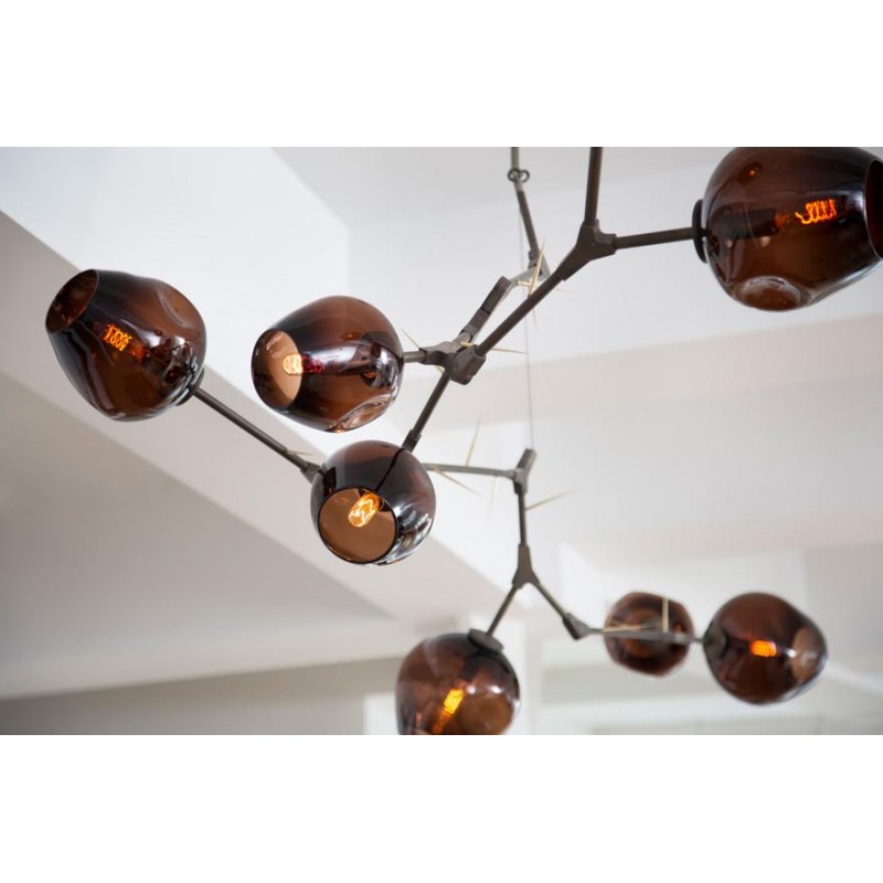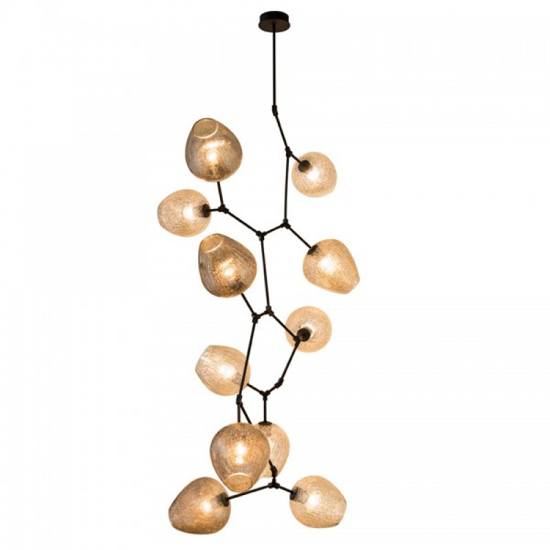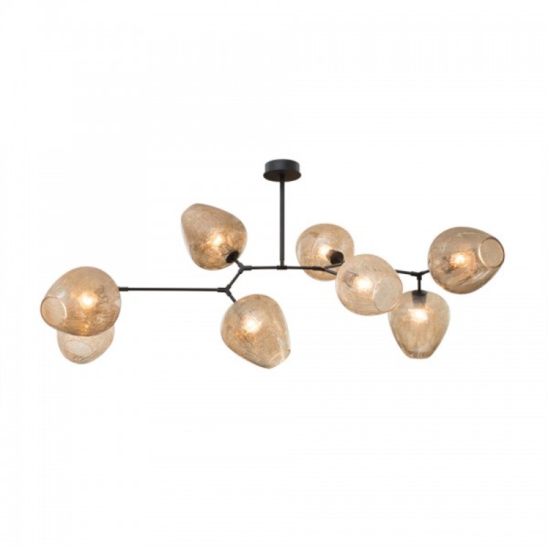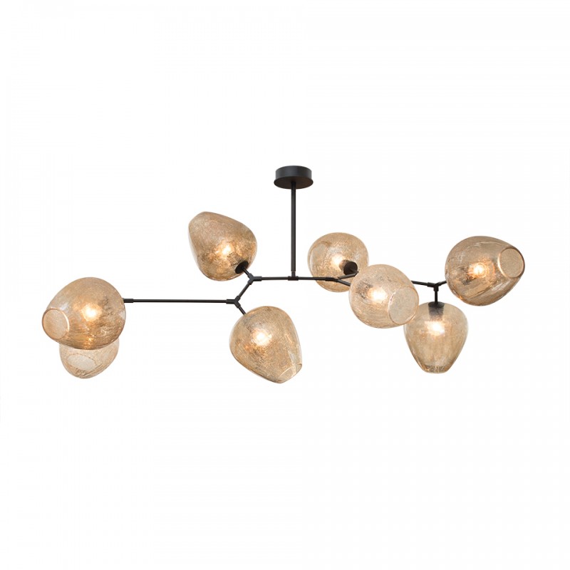 The irregular symmetry of the design in combination with the Acid Blackened Iron, Champagne Crackle Glass almost makes this feel like something from outer space. With 8 lights, it provides plenty of wattage over a large table. Consider shortening the pipe so it appears to be hugging the ceiling for a totally original look. It's truly an eye-catching piece that would bring in many compliments for years to come.
