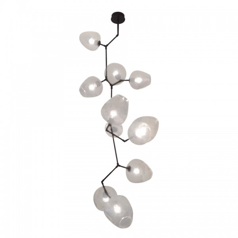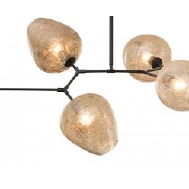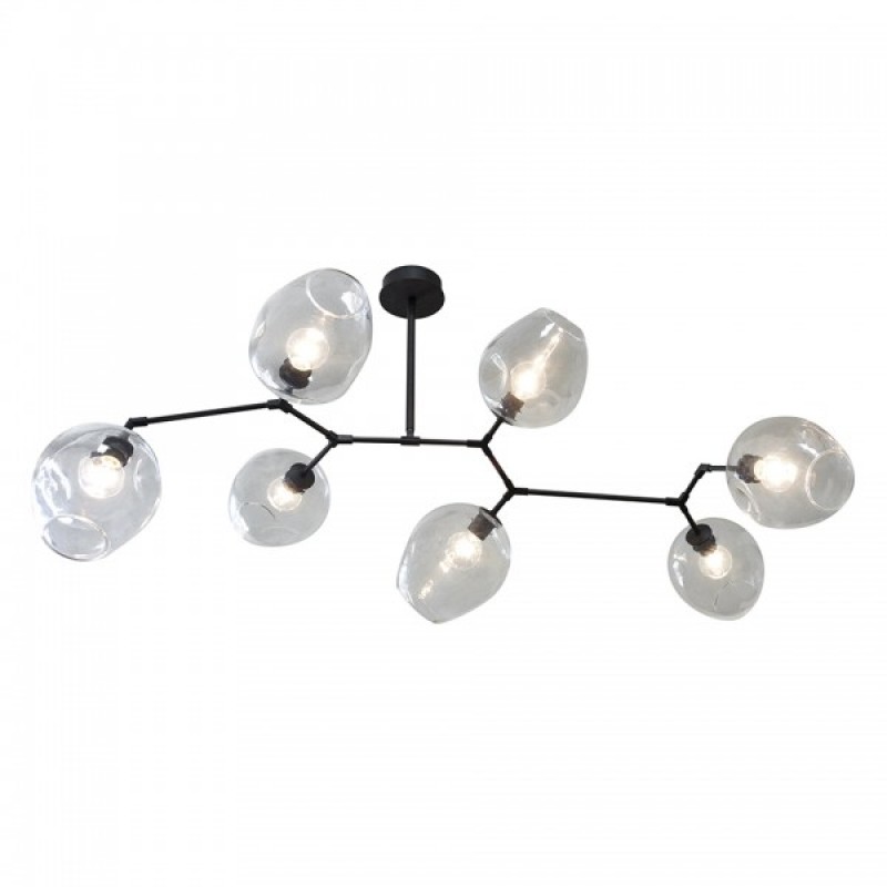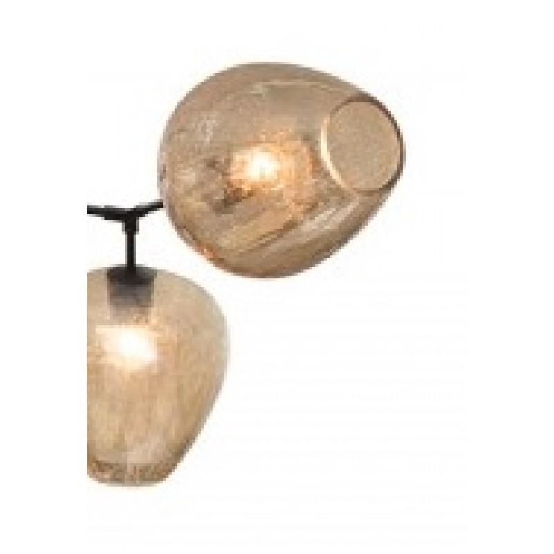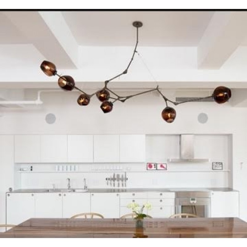 The irregular symmetry of the design in combination with the Acid Blackened Iron, Champagne Crackle Glass almost makes this feel like something from outer space. With 8 lights, it provides plenty of wattage over a large table. Consider shortening the pipe so it appears to be hugging the ceiling for a totally original look. It's truly an eye-catching piece that would bring in many compliments for years to come.