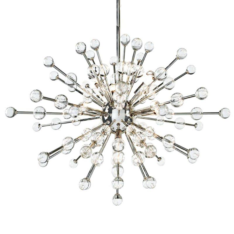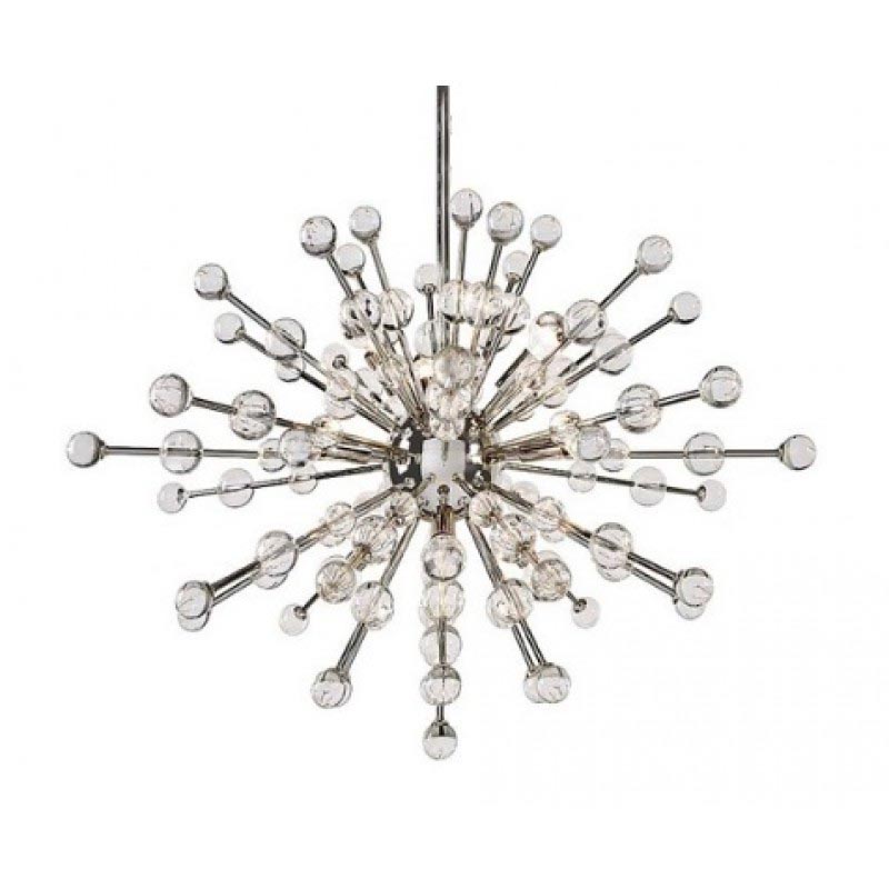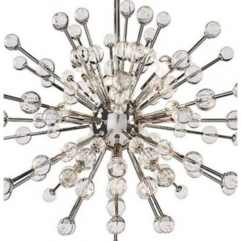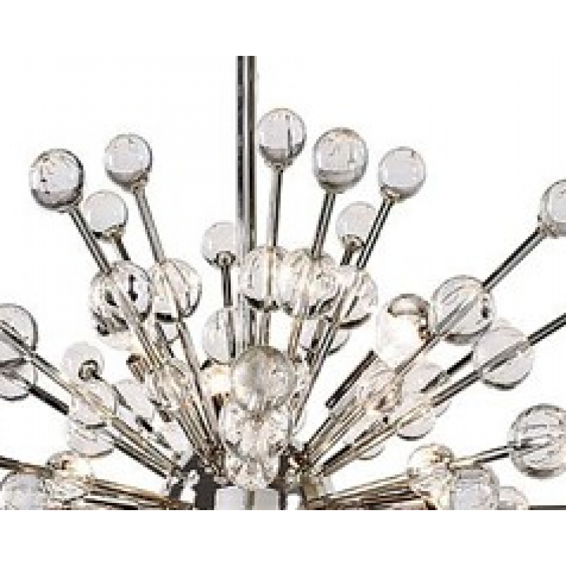 Decorate your home with a brush of contemporary styling when you install this Sputnik design Chandelier. Its design features a central sphere, which has arms coming out of it and is all embellished in a nickel plating. Among these arms, glass balls are featured, each of which is capable of holding a 40 Watt silver-tipped candelabra base bulb. Built from metal, the Sputnik Chandelier is strong. Fall in love with this modern style for your inner space!