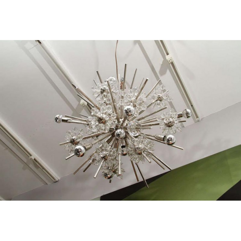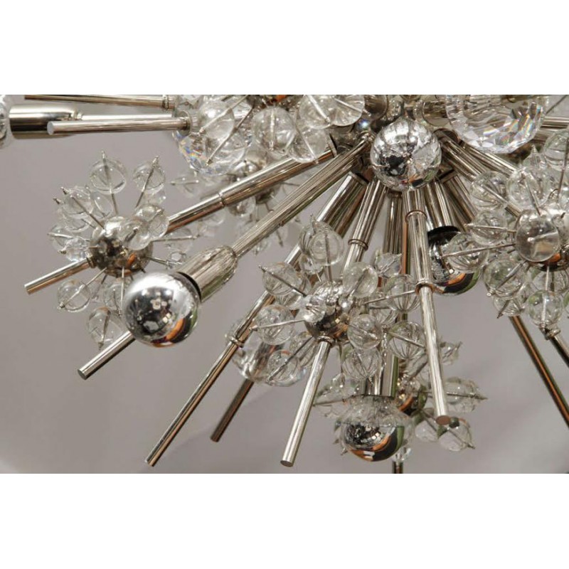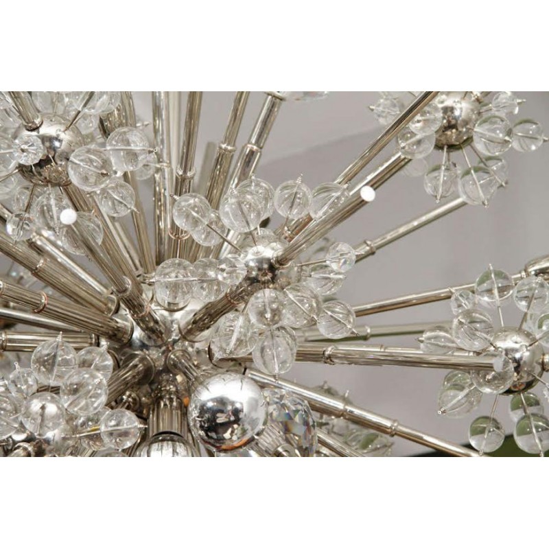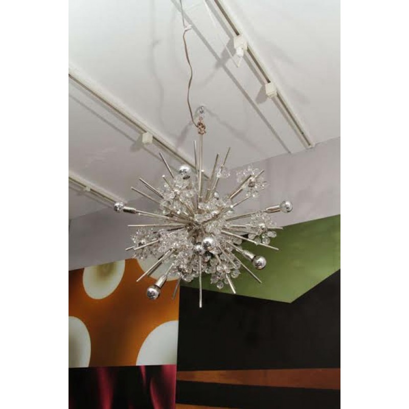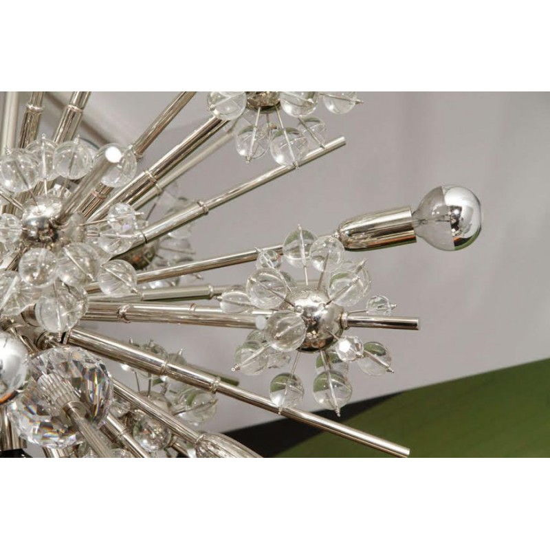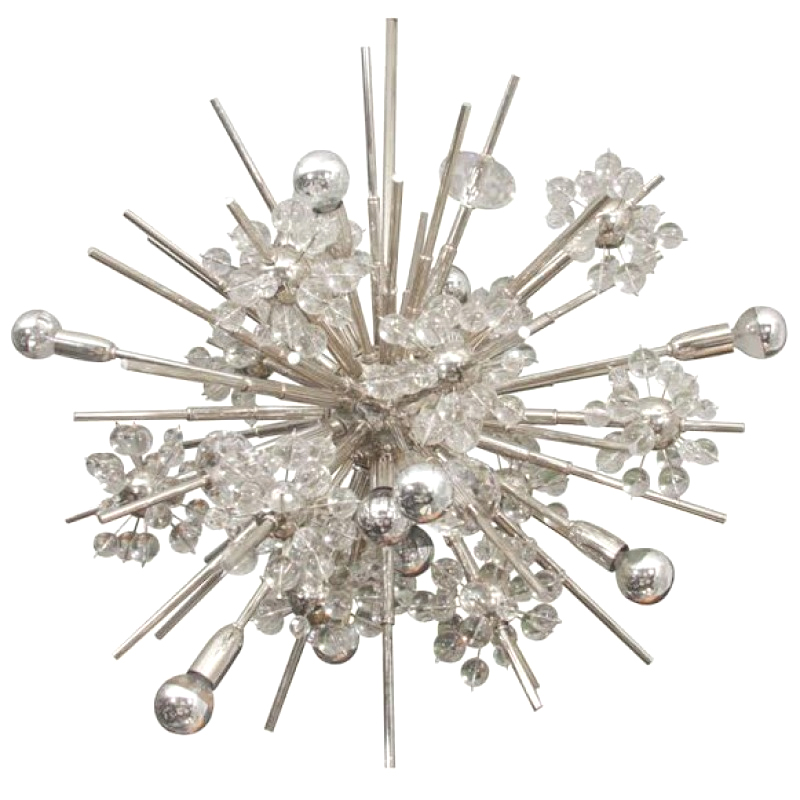 Bedeck your home with a brush of contemporary styling when you install this Sputnik design chandelier. Its design features a central sphere, which has arms coming out of it and is all embellished in a nickel plating. Among these arms, teardrop glass balls are featured, each of which is capable of holding a 40W silver-tipped candelabra base bulb. Built from metal, the Sputnik Chandelier is strong. Fall in love with this modern style for your inner space! Every chandelier can also be combined with a matching table lamp and wall lamp to accomplish the best room design. Our company provides collections that can make all your project dreams come true.