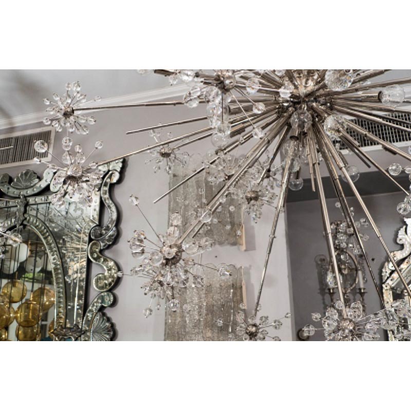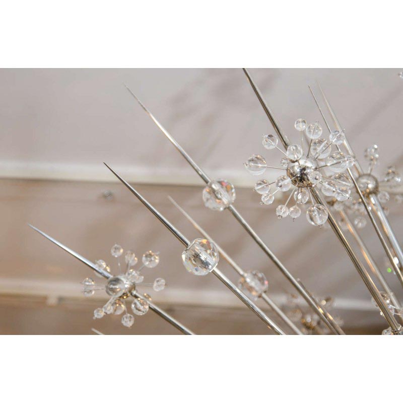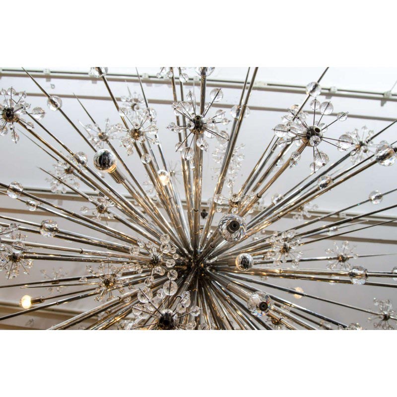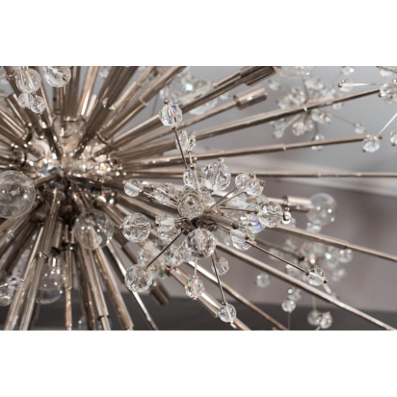 Be the life of the party ALL the time with this extremely elegant, yet modern Crystal Esprit Sputniklighting fixture that glows with sophistication and pristine style. In addition to its extensively detailed design, there is also a huge celestial and space-oriented inspiration for this piece. The inspiration for it came from Wallace K. Harrison, the architect of the Metropolitan Opera House, when he gave the designers of the original Sputnik, pictures of the galaxy. The original Sputniks are one of the most recognizable features of the opera house, and it's said that you can even see them through the windows from the outside!