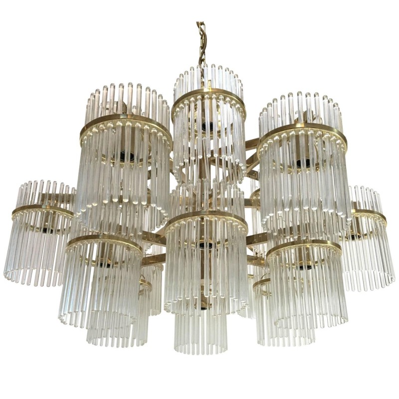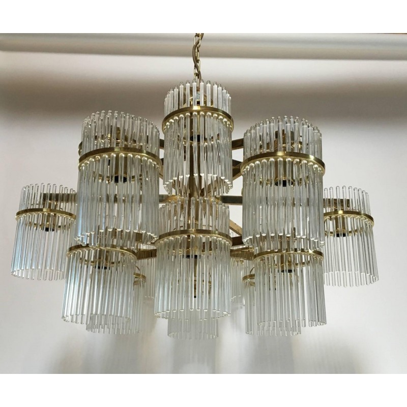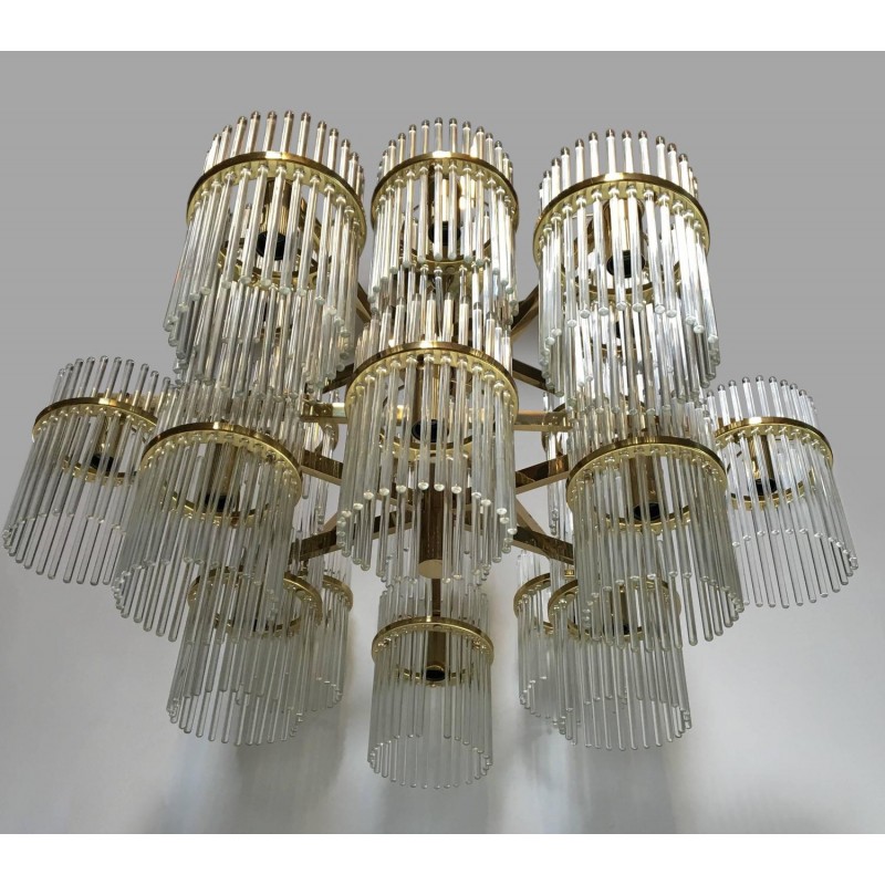 QZ7860 Large 18 Arm Brass And Glass Chandelier By Gaetano Sciolariitaly