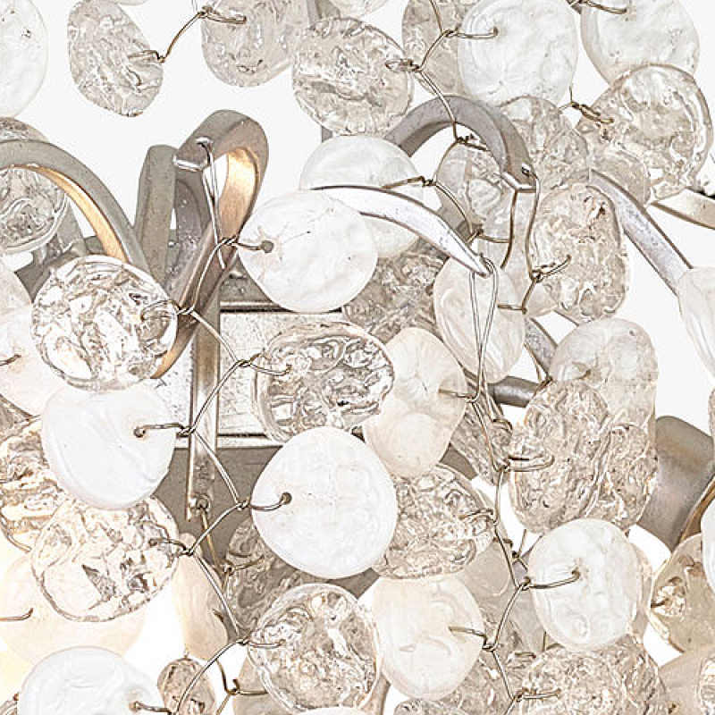 A stunning contemporary wall light with a metal frame and strings of hand-made, irregular Murano glass drops in a variety of color combinations.The G9 bulbs are fitted inside custom-made glass covers with a satin finish, which gives a beautifully soft light.