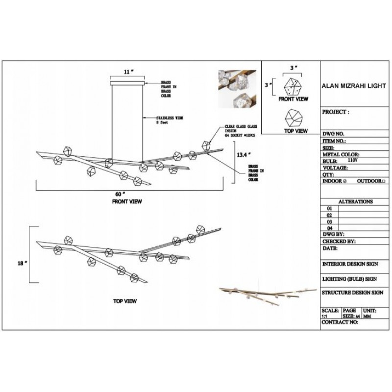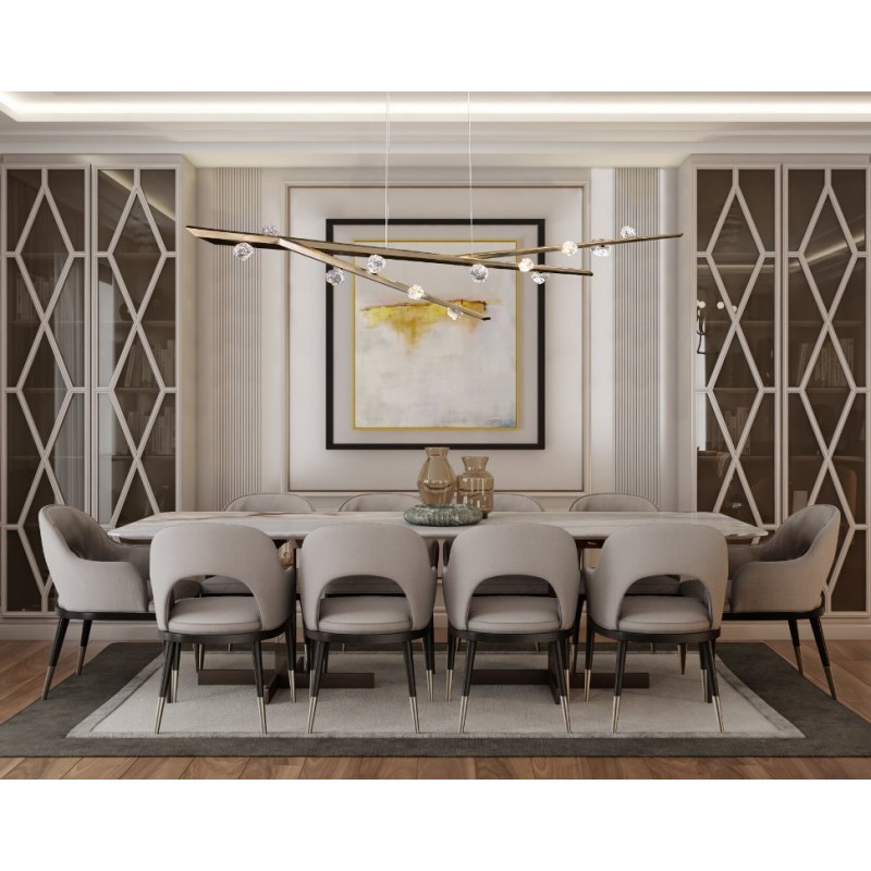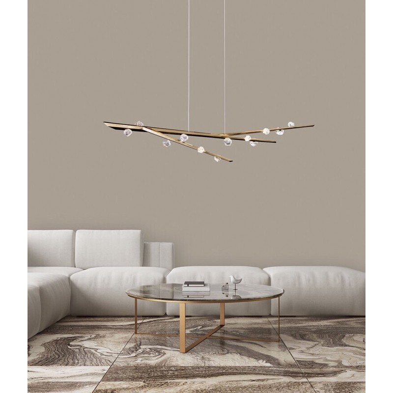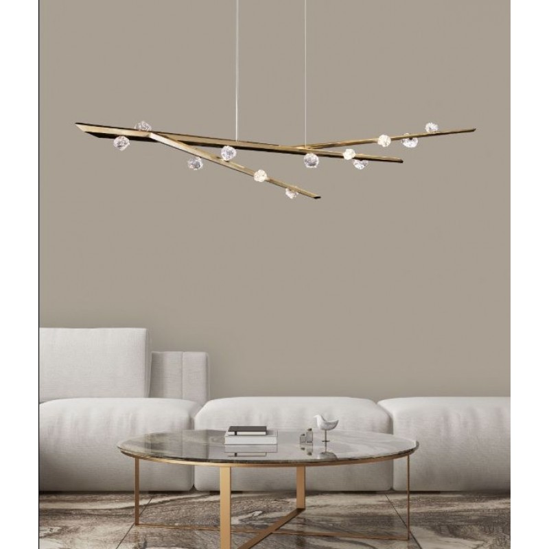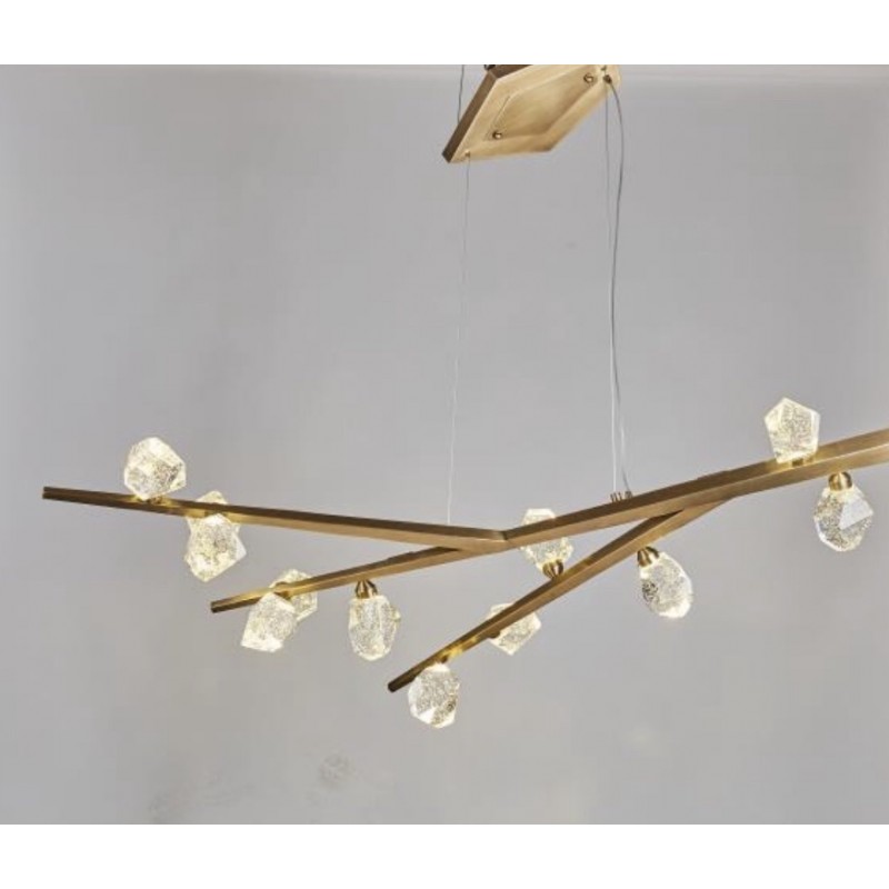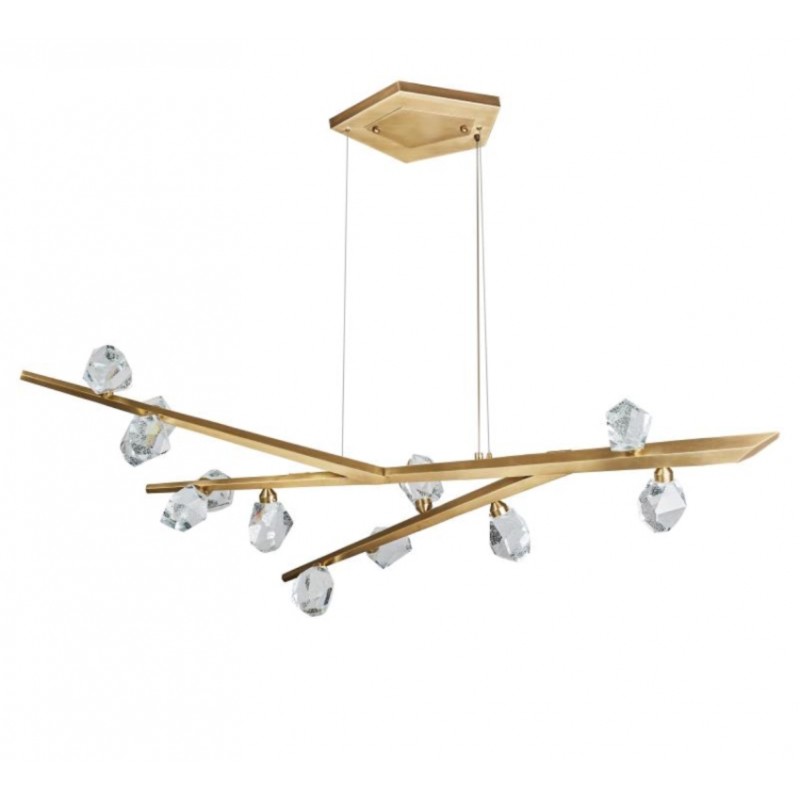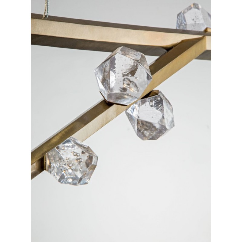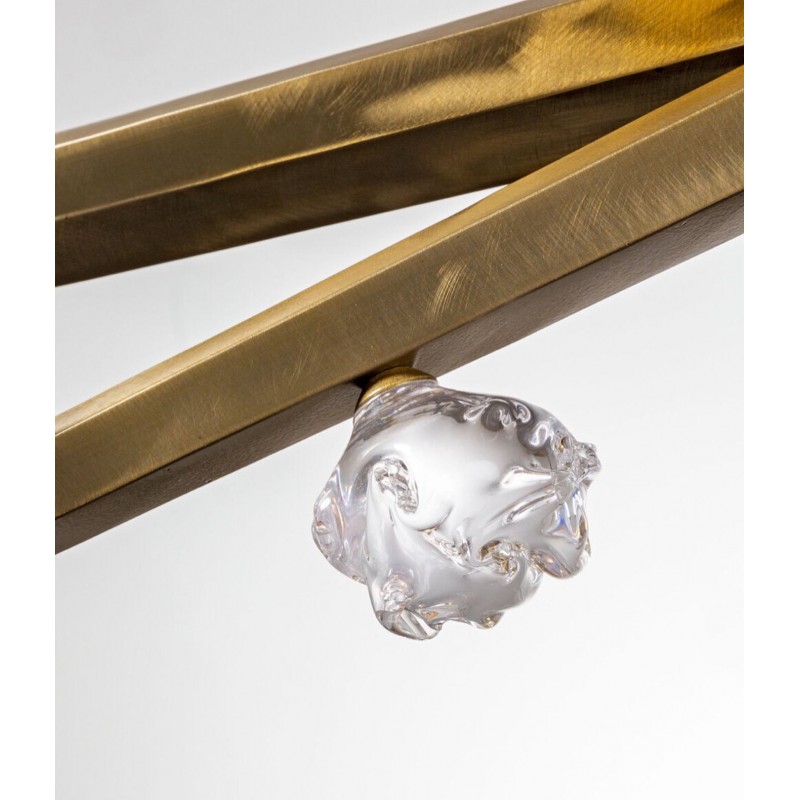 Hand hewn steel is meticulously polished and adorned with organic artisan glass buds in this magnificent linear sculpture. The SJ2114 chandelier is a great addition for both restaurants and homes. Having created custom chandeliers for over three decades, we specialize in bringing lighting concepts into reality, whether your inspiration comes from a rough sketch, an existing chandelier, our original concepts, or even your own creative imagination. We approach this sculptural object in a contemporary, unexpected and creative way