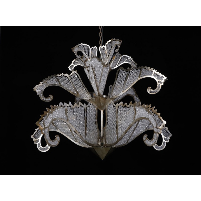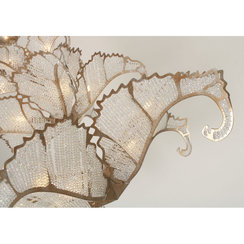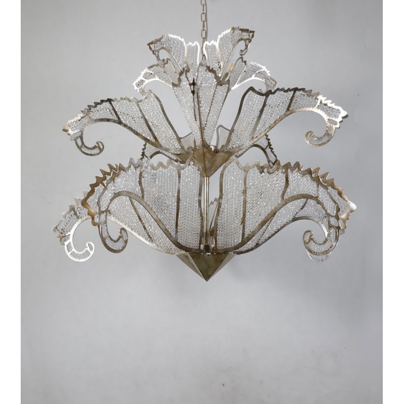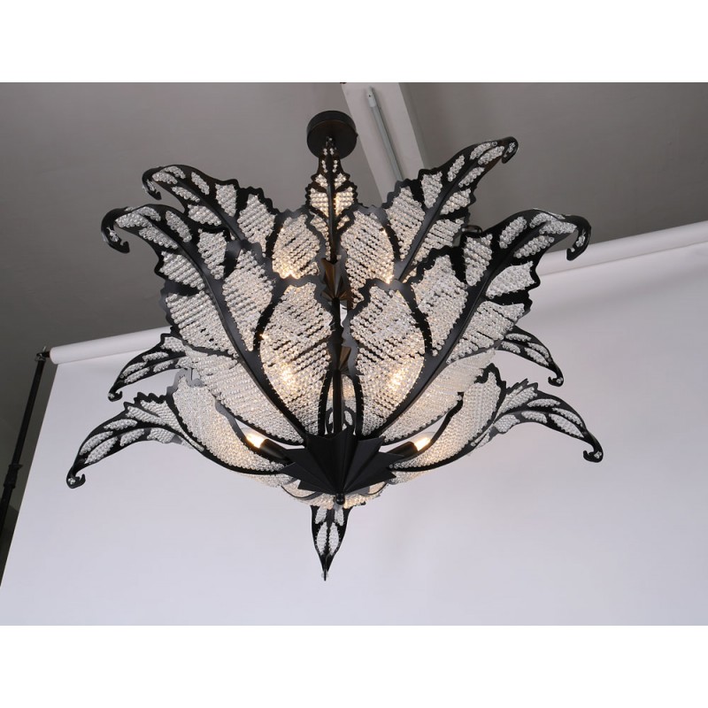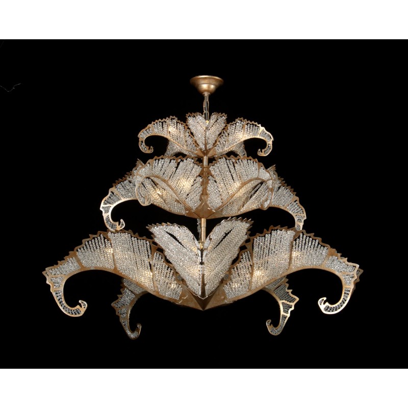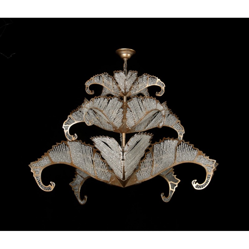 The Biarritz Chandelier’s three tiers perfectly balance austerity and embellishment. For this interpretation of our classic Biarritz Ceiling Fixture, Joe Niermann drew inspiration from nature. From below, the chandelier resembles a crystallized snowflake. Viewed from the side, it recalls a cluster of stylized leaves outlined in our silver leaf finish. Many strands of crystal, resembling the soft veins in a leaf, complete this simple yet stylish design. A unique leaf-shaped chandelier will make your ceiling the most beautiful part of any room. An invisible metal skeleton traces the line of a primordial geometric frame in space. From there, chains of crystals hang down delicately reaching different heights, creating a feathery profile much different from the horizontal precision with which they begin their descent. Our company provides collections that can make all your project dreams come true!