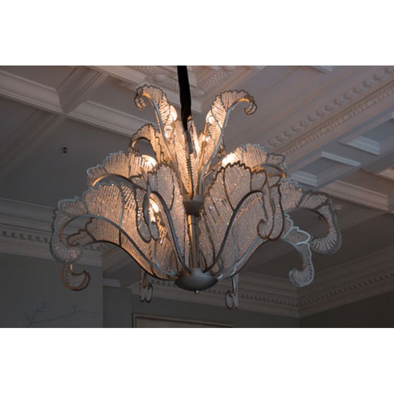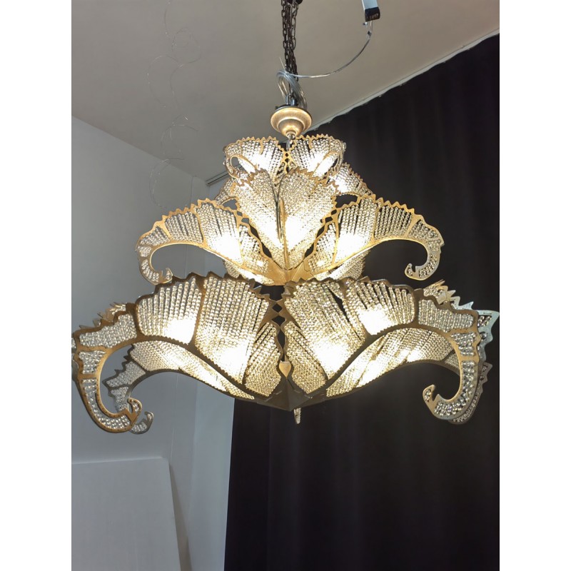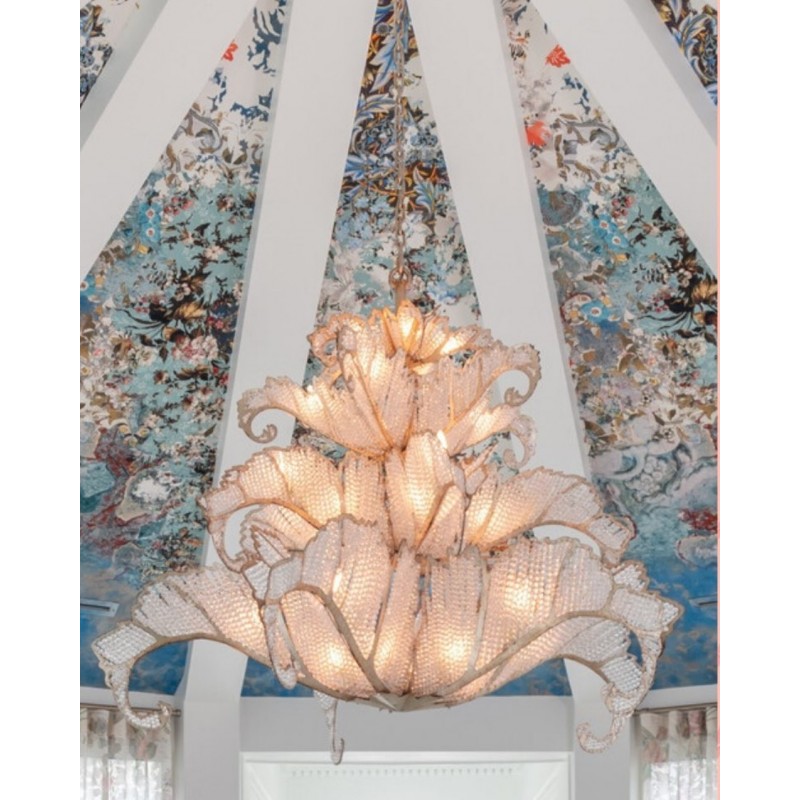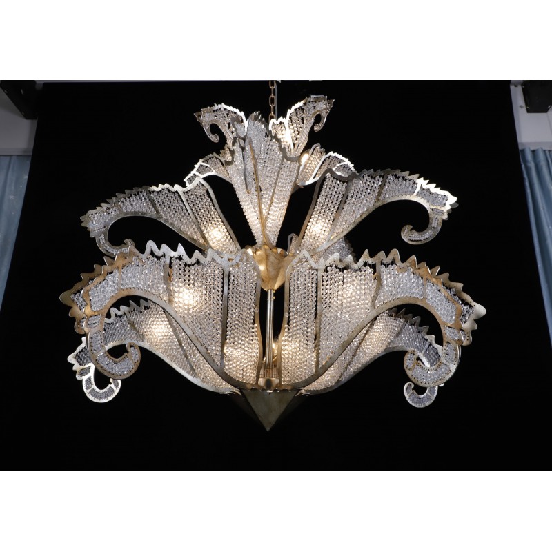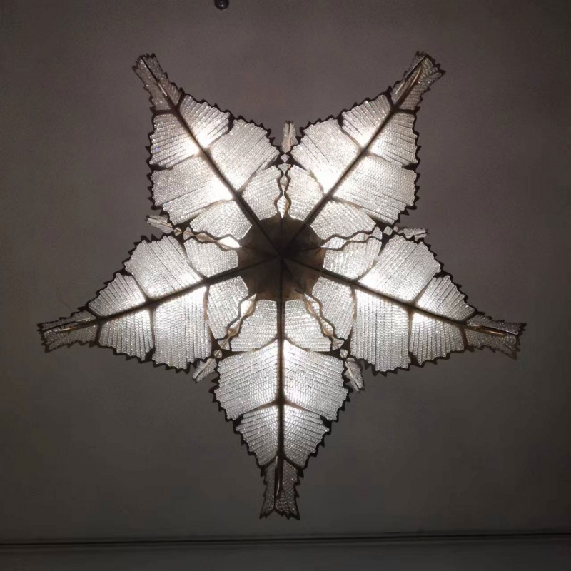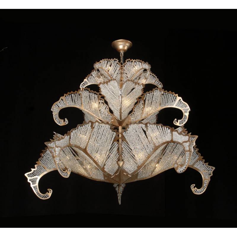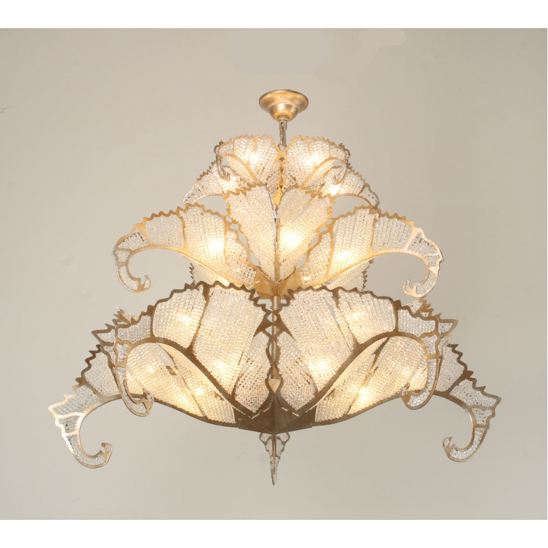 The Biarritz Chandelier’s three tiers perfectly balance austerity and embellishment. For this interpretation of our classic Biarritz Ceiling Fixture, Joe Niermann drew inspiration from nature. From below, the chandelier resembles a crystallized snowflake. Viewed from the side, it recalls a cluster of stylized leaves outlined in our silver leaf finish. Many strands of crystal, resembling the soft veins in a leaf, complete this simple yet stylish design. A unique leaf-shaped chandelier will make your ceiling the most beautiful part of any room. An invisible metal skeleton traces the line of a primordial geometric frame in space. From there, chains of crystals hang down delicately reaching different heights, creating a feathery profile much different from the horizontal precision with which they begin their descent. Our company provides collections that can make all your project dreams come true!
