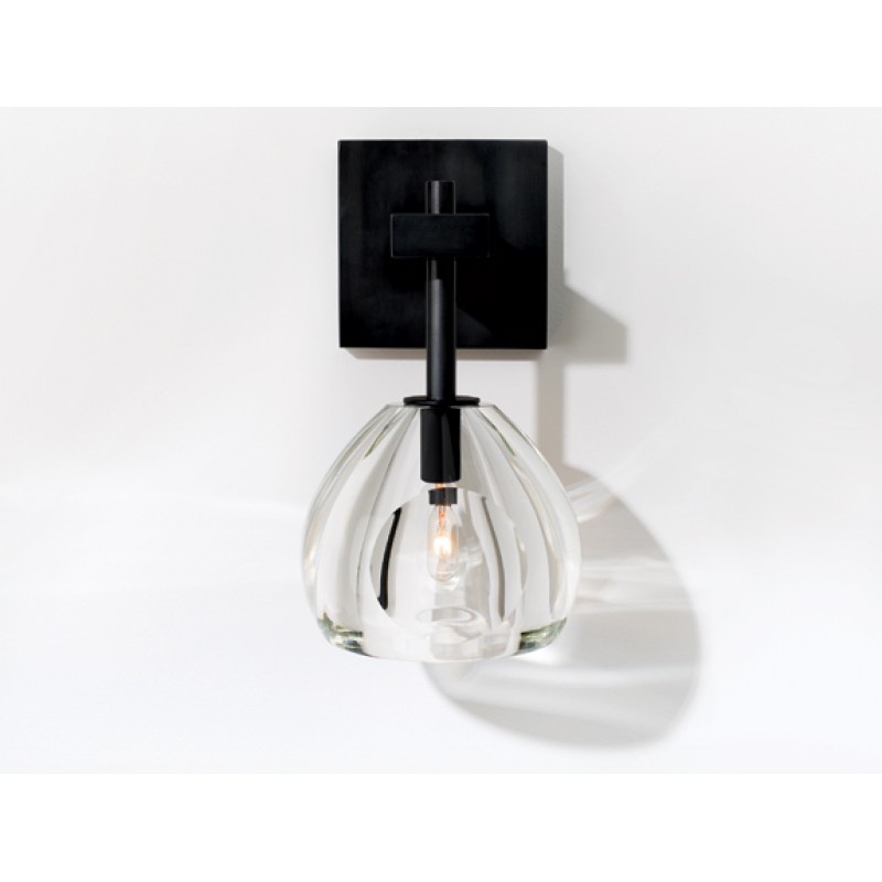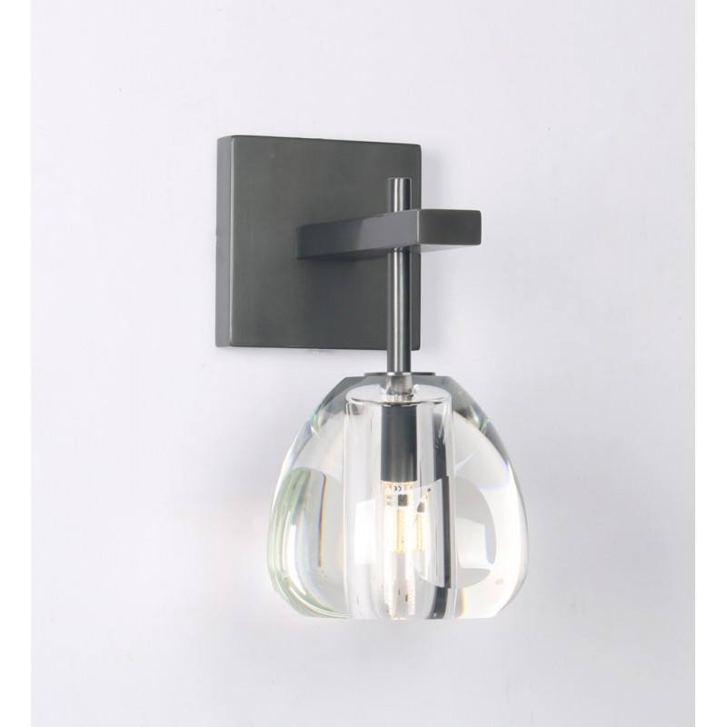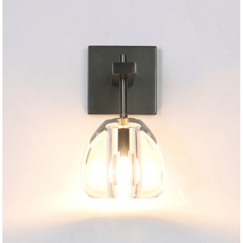 Elegant wall lamp hand-blown leaded crystal with a patina finish, custom designed to light your, your living room, or any room you like.  At Alan Mizrahi Lighting Design, we supply and manufacture many highly sought after designer pieces. All fixtures can be customized by number of lights, color and size to meet your specific needs. Every can also be combined with a matching table lamp to accomplish the best room design.
