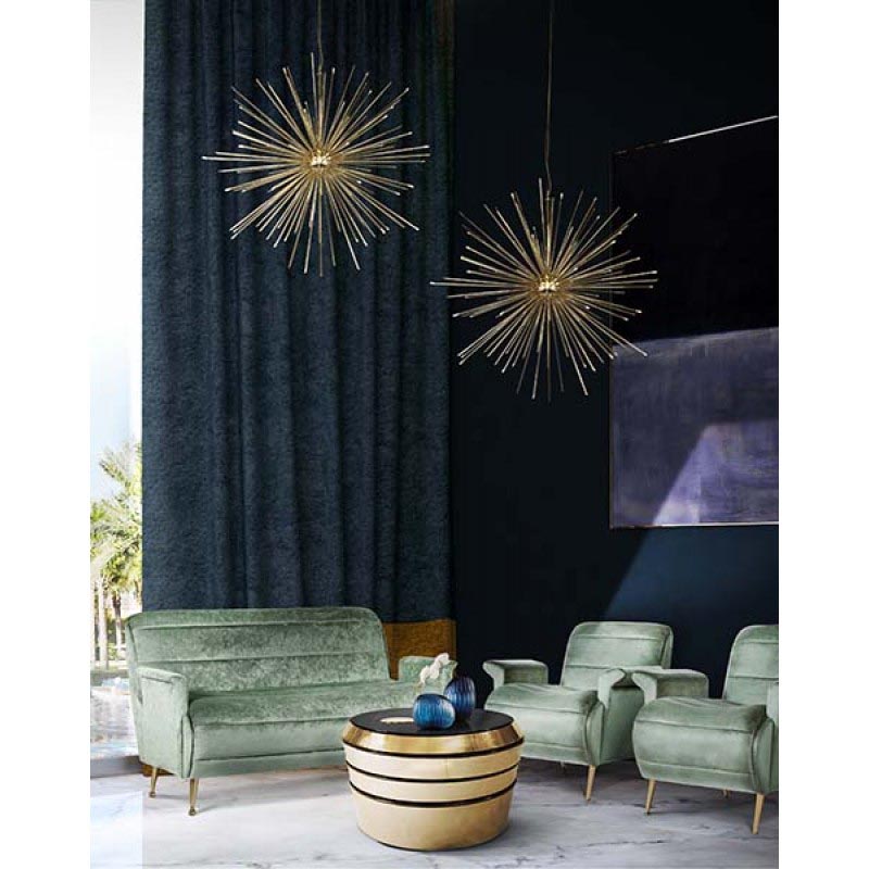 Cannonball light pendant is the perfect explosion of luxury. Inspired by the boldness of a cannonball, this pendant lamp came to reinvent what mid-century modern design is. With its unique shape, this exquisite lamp is handmade in brass and features a gold-plated finish, proof of some of the most high-quality craftsmanship in the lighting design world. Cannonball is a modern brass pendant lamp which will give an elegant and sophisticated touch to your mid-century modern living room.