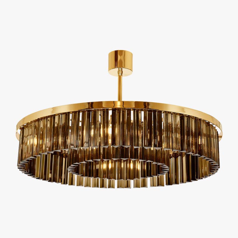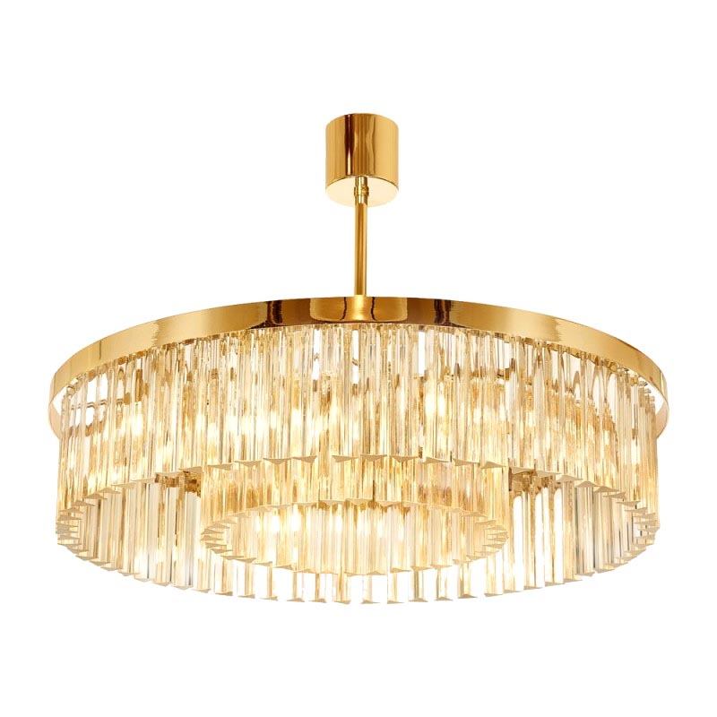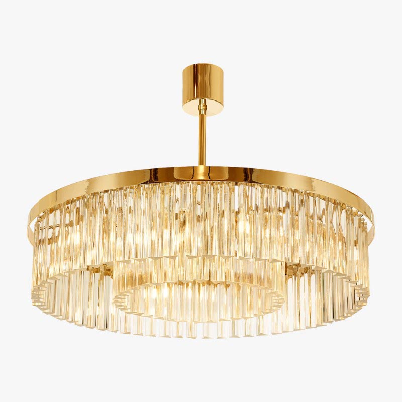 An ultra-chic two ring drum chandelier with a metal top band. This piece is great for the crystal lover, or the one who wants that 1950's nostalgia to set a particular mood.