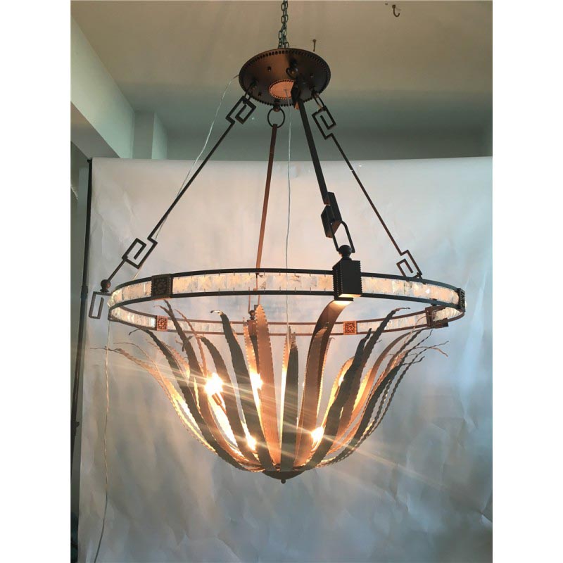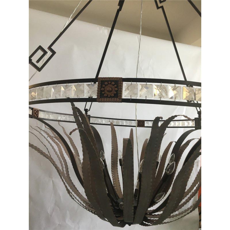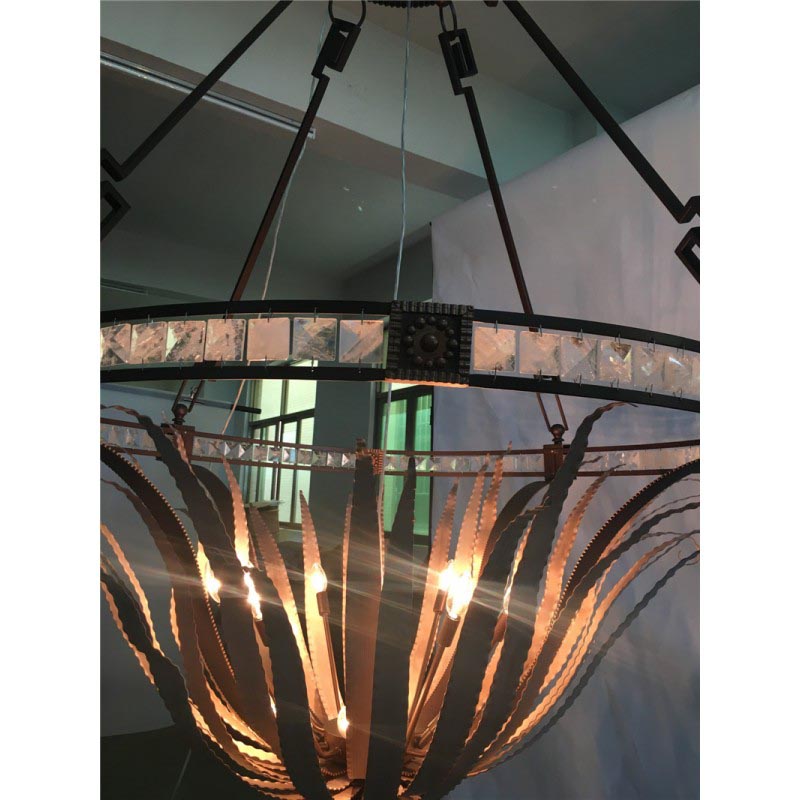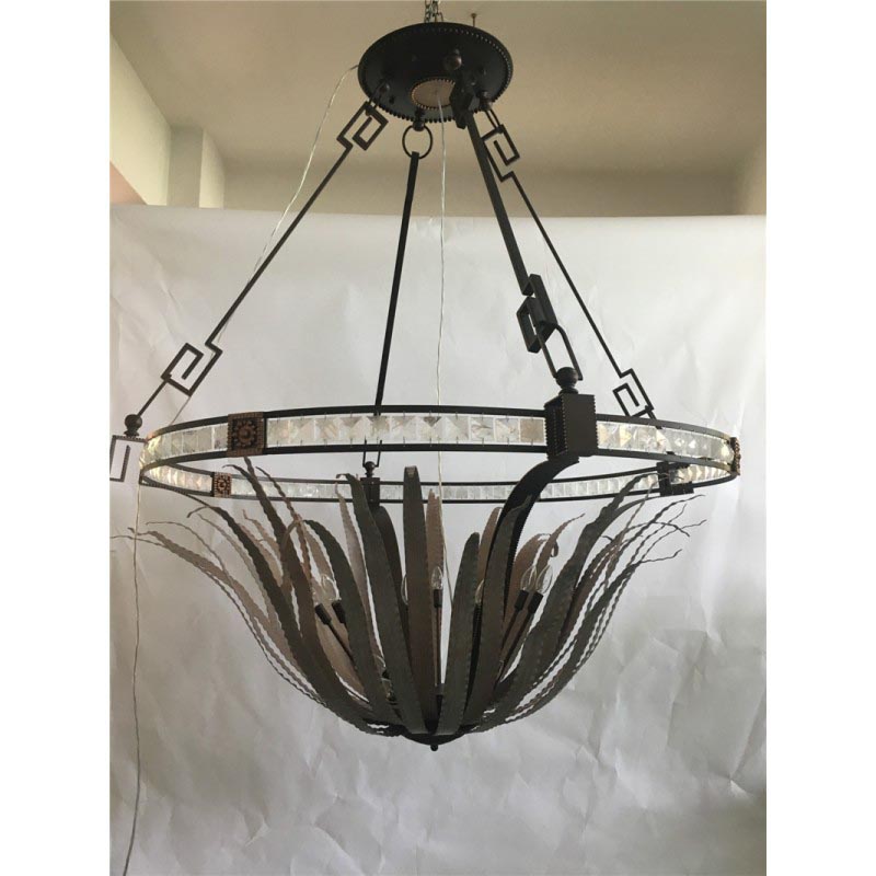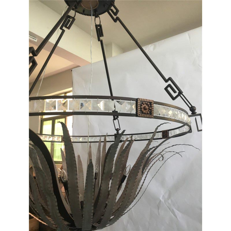 The majestic arms of this piece flow beautifully in a curling from top to bottom of the frame, spinning and wrapping the piece flawlessly. The striking, fantasy feel of this piece would add the perfect touch to a room that is need of a pop of color or a huge statement piece set to transform a space into something totally different. Its smooth, hand-crafted glass and multi colored head are sure to draw eyes and inquiries for years to come.