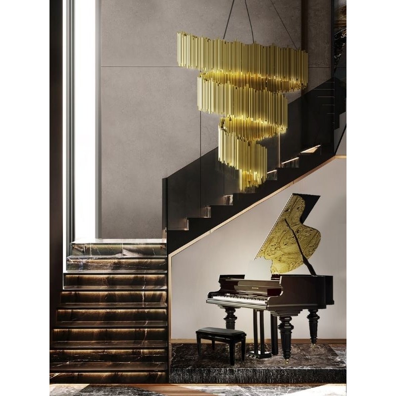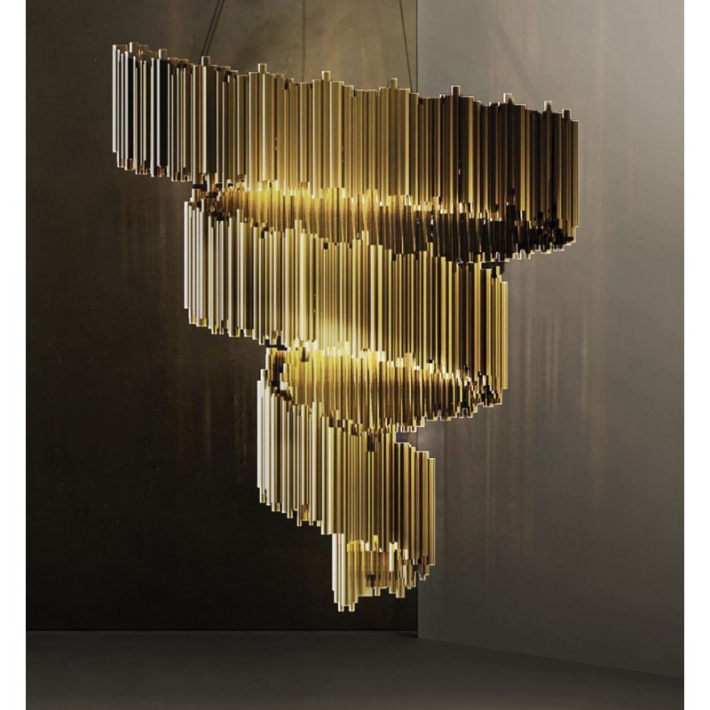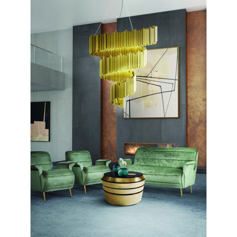 One of the most enchanting mid-century modern chandeliers that DelightFULL has to offer to the world is a statement piece. With an enchanting touch just like every time Dave Brubeck touched his piano, the charming and alluring effect provided by the spiral case will make this unique lighting design shine in a classic and luxurious living room design or in a lighting hospitality project. Handmade in brass, the care and sleek movements of this modern chandeliers are clear, just like jazz, it never ceases to be timeless.