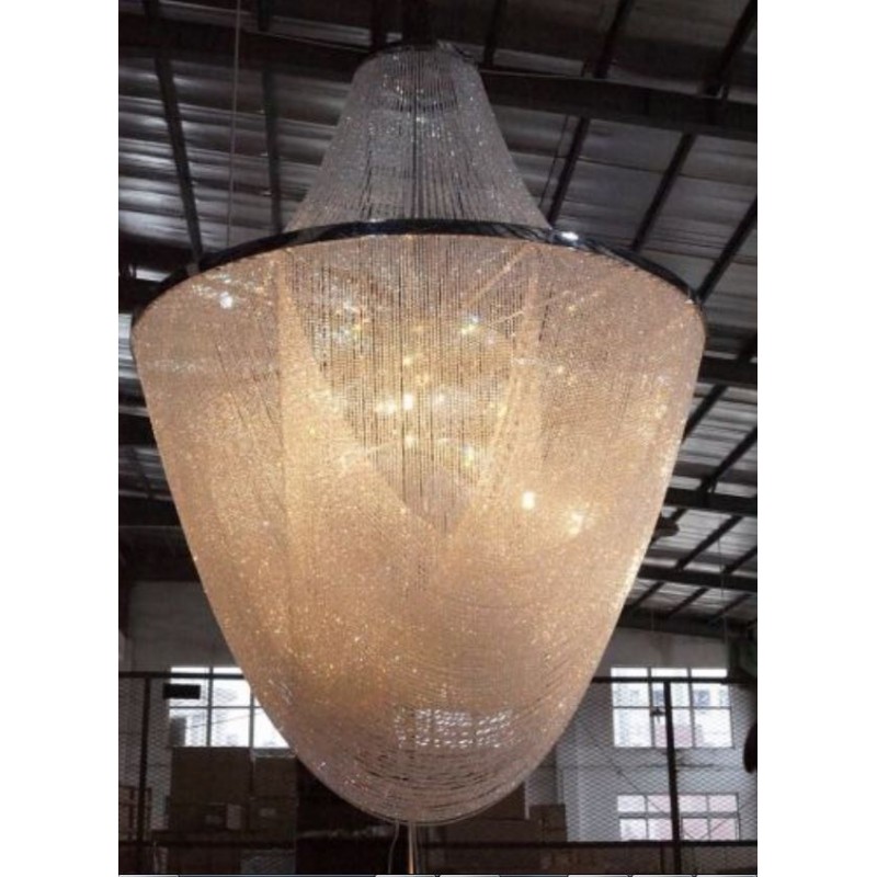 THE LOBBY WM188 is an Empire style chandelier given a modern update with strings of crystal beads suitable for home decoration, project such as 5 star hotel, as mansion, villa or bar and more. Having created custom chandeliers for over three decades, we are specializes in bringing lighting concepts into reality, whether your inspiration comes from a rough sketch, an existing chandelier, our original concepts, or even your own creative imagination. Large or small, our team can meet the challenge, and can even coordinate the production of a private collection, where all finishes are kept consistent. Let us create the perfect lighting fixtures for your individual needs, to your individual specifications, and with attention to detail throughout production.