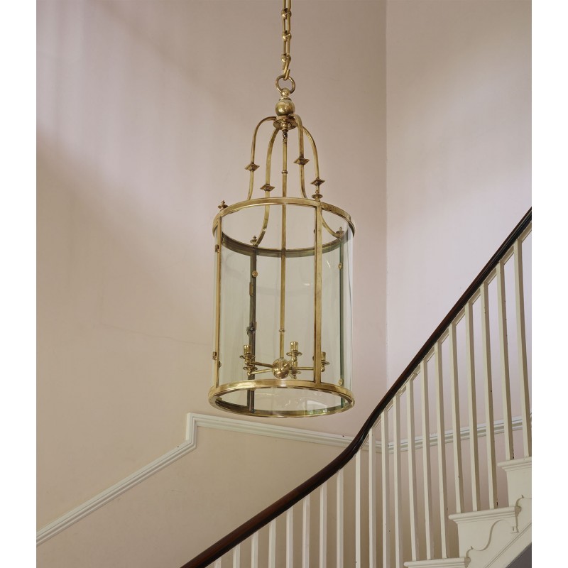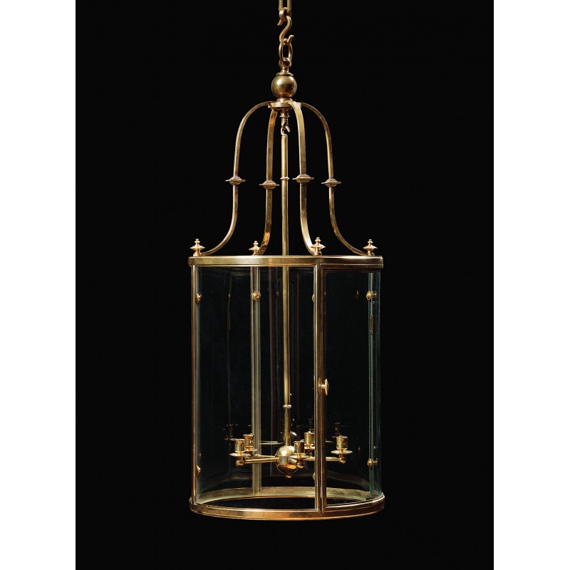 Attingham is the quintessential cylindrical lantern cast in solid brass using the lost wax process. Four ‘S' curved arms bear unusual square and stepped decorative details and terminate in incised and turned finials. This timeless lantern exudes elegance on an impressive scale, and can be patinated in any of our hand finishes.
