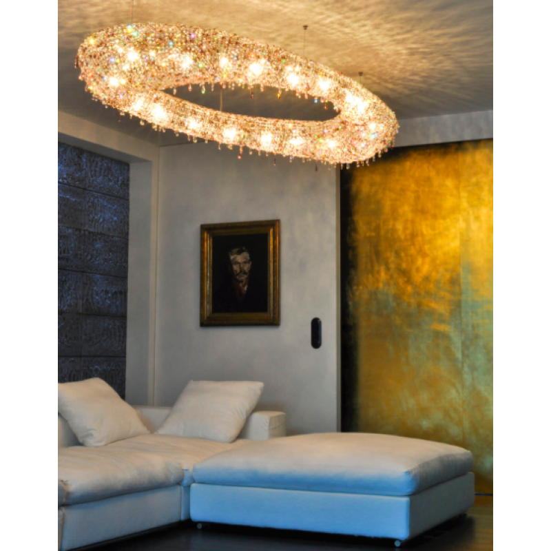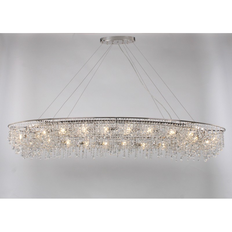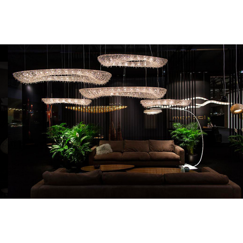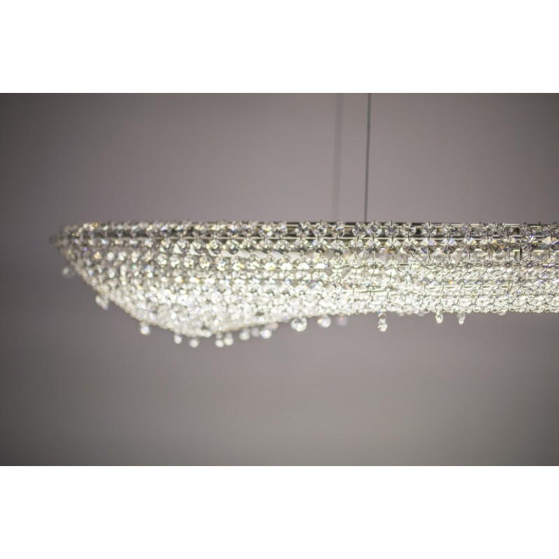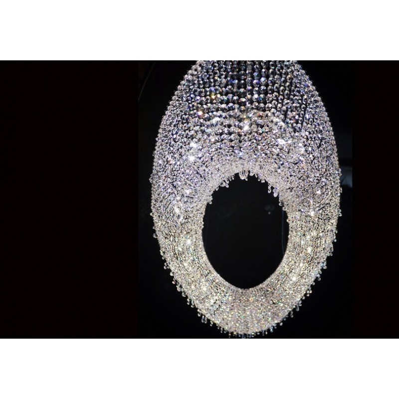 This stunning chandelier light creates a gorgeously crafted, oval crystal hollow cloud. Made of pristine crystal pieces, this chandelier provides a perfect blend of contemporary and bold style, statement-making power. It would be a wonderful piece showcased in a hotel lobby, living room, or many other settings. In addition, it can also be made as a pendant or ceiling lamp. The sophisticated look of this dazzling masterpiece is surely one to cherish in the years to come.