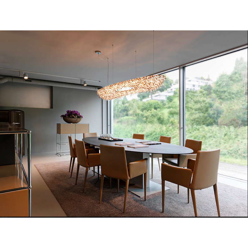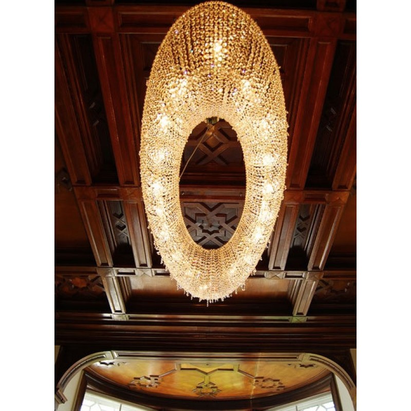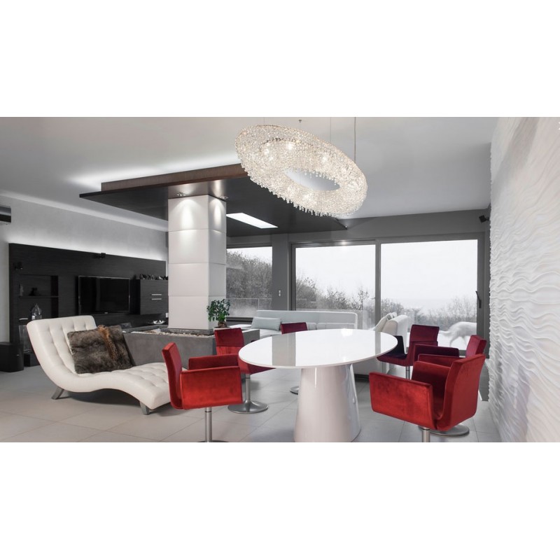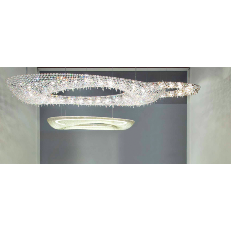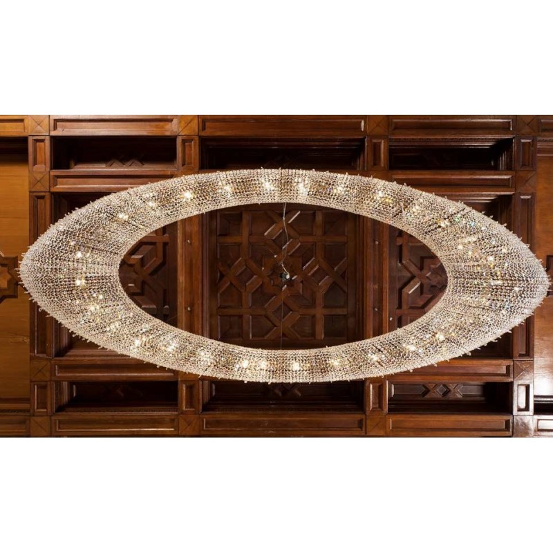 This stunning chandelier light creates a gorgeously crafted, oval crystal hollow cloud. Made of pristine crystal pieces, this chandelier provides a perfect blend of contemporary and bold style, statement-making power. It would be a wonderful piece showcased in a hotel lobby, living room, or many other settings. In addition, it can also be made as a pendant or ceiling lamp. The sophisticated look of this dazzling masterpiece is surely one to cherish in the years to come.