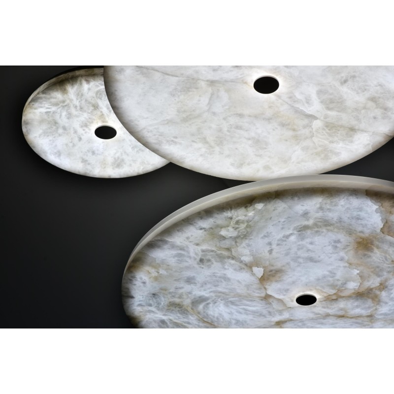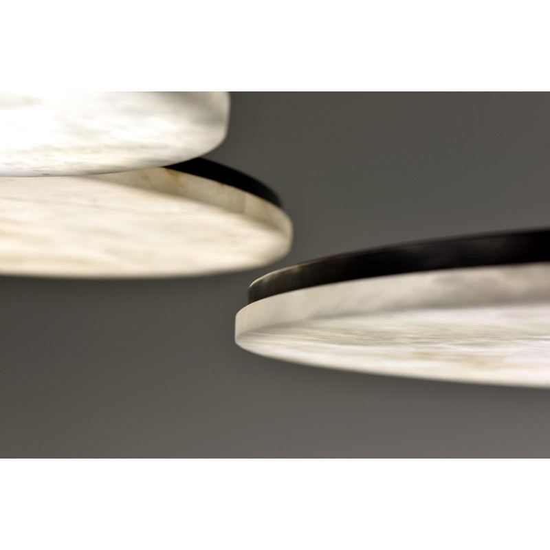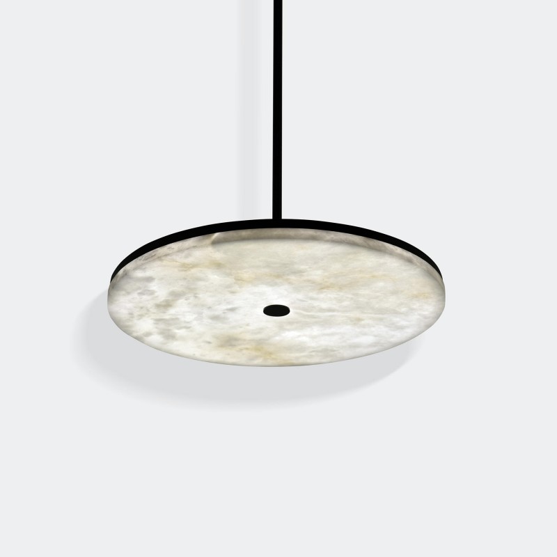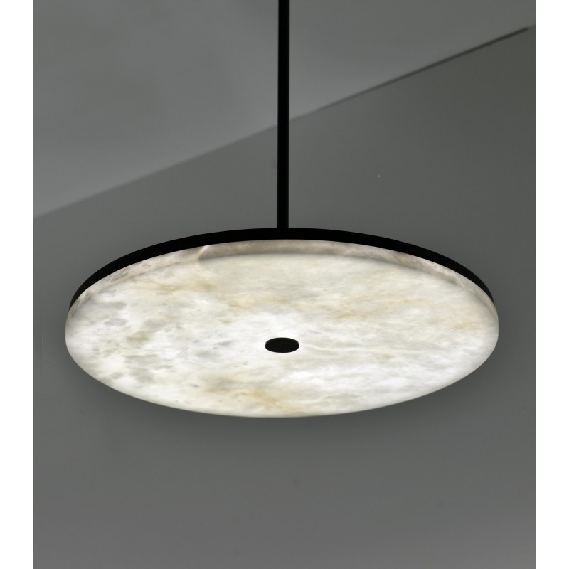 The Manhattan Pendant features a minimalist disc hanging from a clean-lined metal structure. Crafted using innovative techniques, the alabaster light shines with a bold radiance despite its streamlined form. Whether hanging alone or as part of a cluster, it creates a captivating plane of ambient light above any interior setting. Through our new Alabaster collection we aim to maintain a balance between modernity and tradition, through innovation and craftsmanship, simplicity and luxury. While constantly working on perfecting our products, our founding values remain unchanged: limitless artistic creation, exclusivity, and uncompromising quality. At Alan Mizrahi Lighting, we select the best raw materials for assembling our products. This applies to all the stones, suspensions, cables and supporting materials we use.